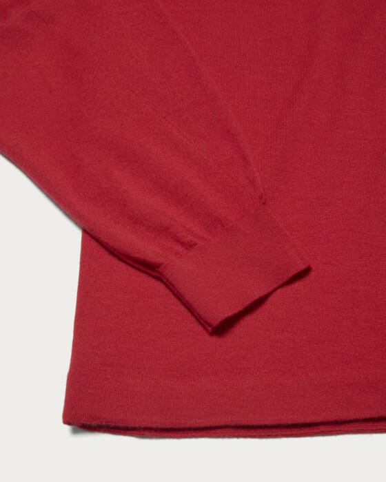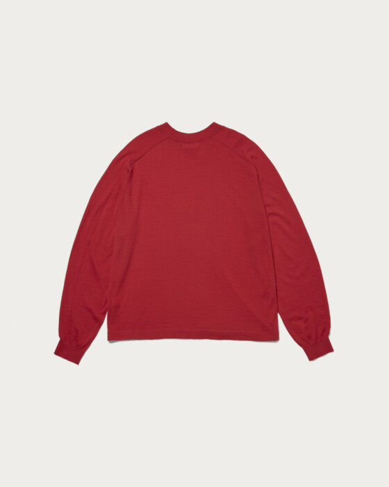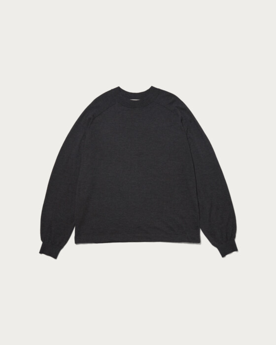 The knitwear brand OWNNESS creates 18-gauge cashmere knits. They use extremely delicate and high-quality worsted cashmere, resulting in a supple texture and an exquisitely fine knit that is breathtakingly beautiful. The length of the garment is set slightly shorter, while the sleeve length is longer. This design choice allows for more cushioning to gather at the sleeve rib when worn. On the other hand, the hem rib is intentionally omitted, giving it a relaxed vibe, yet it retains a classic mood with saddle shoulders.
