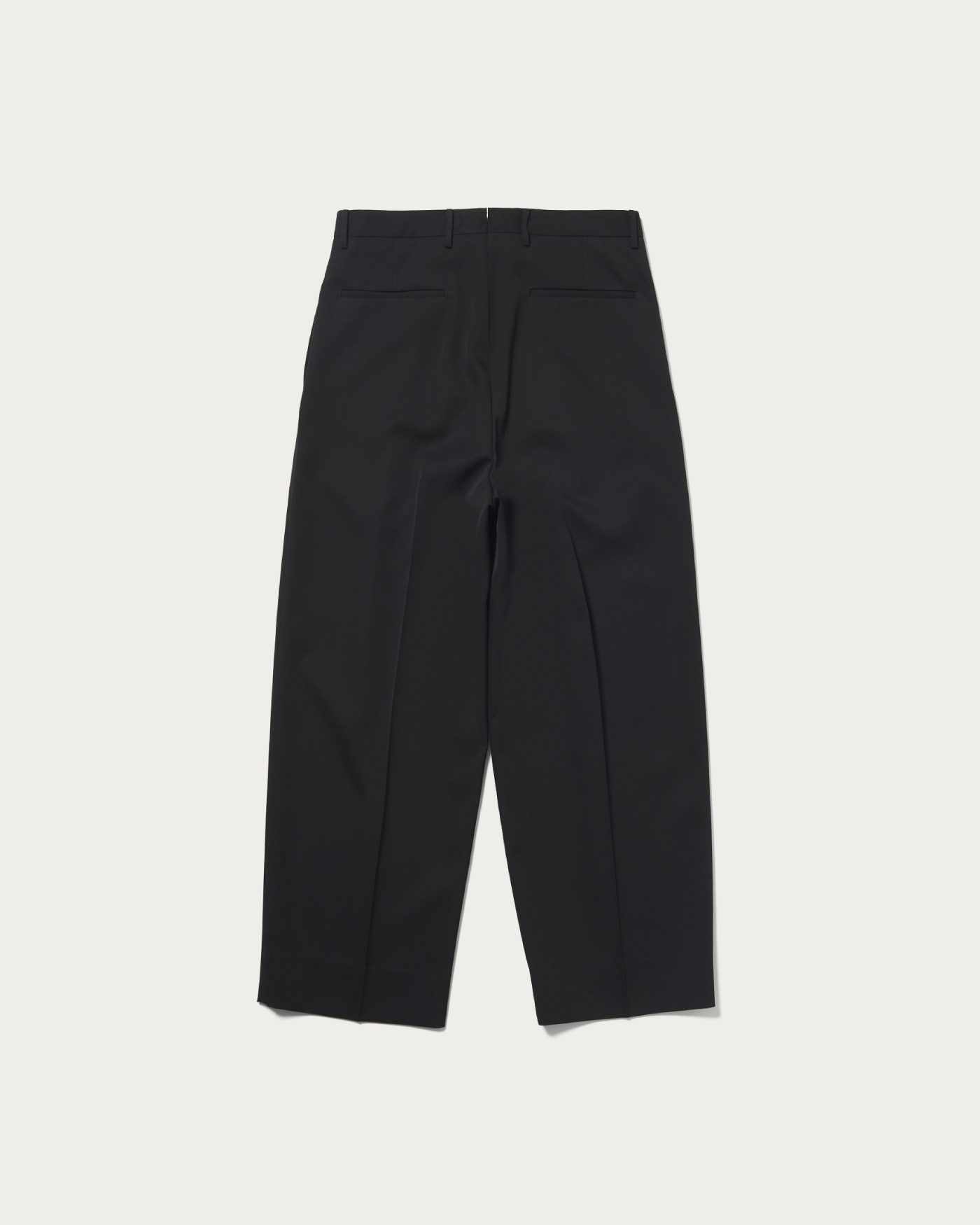 The high-waist style that has been continuously featured since the fall/winter of 2025. It has a relaxed taper from the wide thigh area down to the hem. The fabric is made from specially ordered high-quality worsted wool gabardine. It undergoes a special treatment that is only possible in Japan, achieving a supple firmness. Combined with the fabric, it has evolved into slacks with a strong presence.