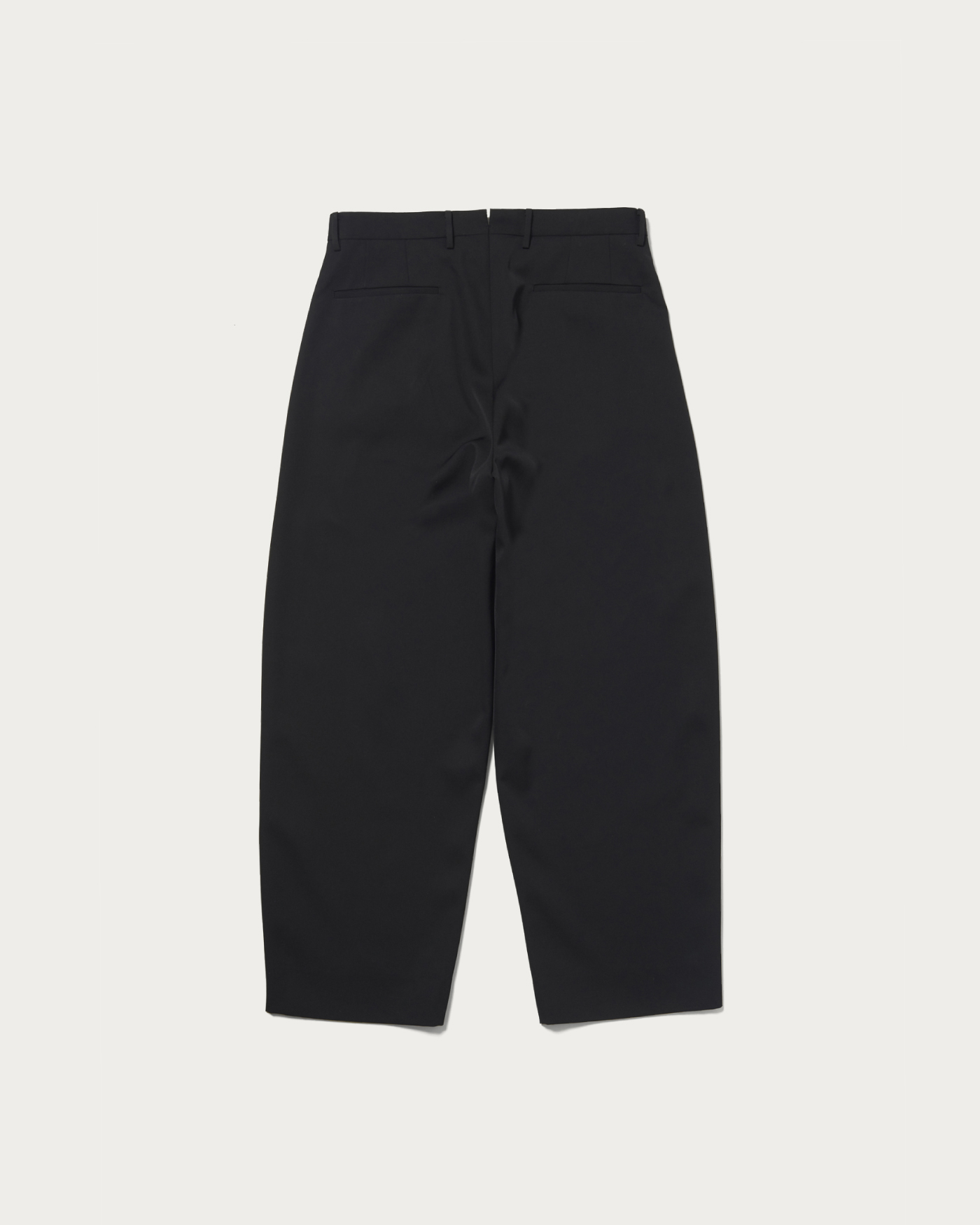 Trousers made from high-quality worsted gabardine. Special processing adds a supple firmness, elevating the fabric to a more luxurious texture. With a subtle balloon silhouette, they are easy to incorporate even for those who usually prefer a straight silhouette. Finishing touches, such as the waistband and fine piping, are also meticulously crafted.