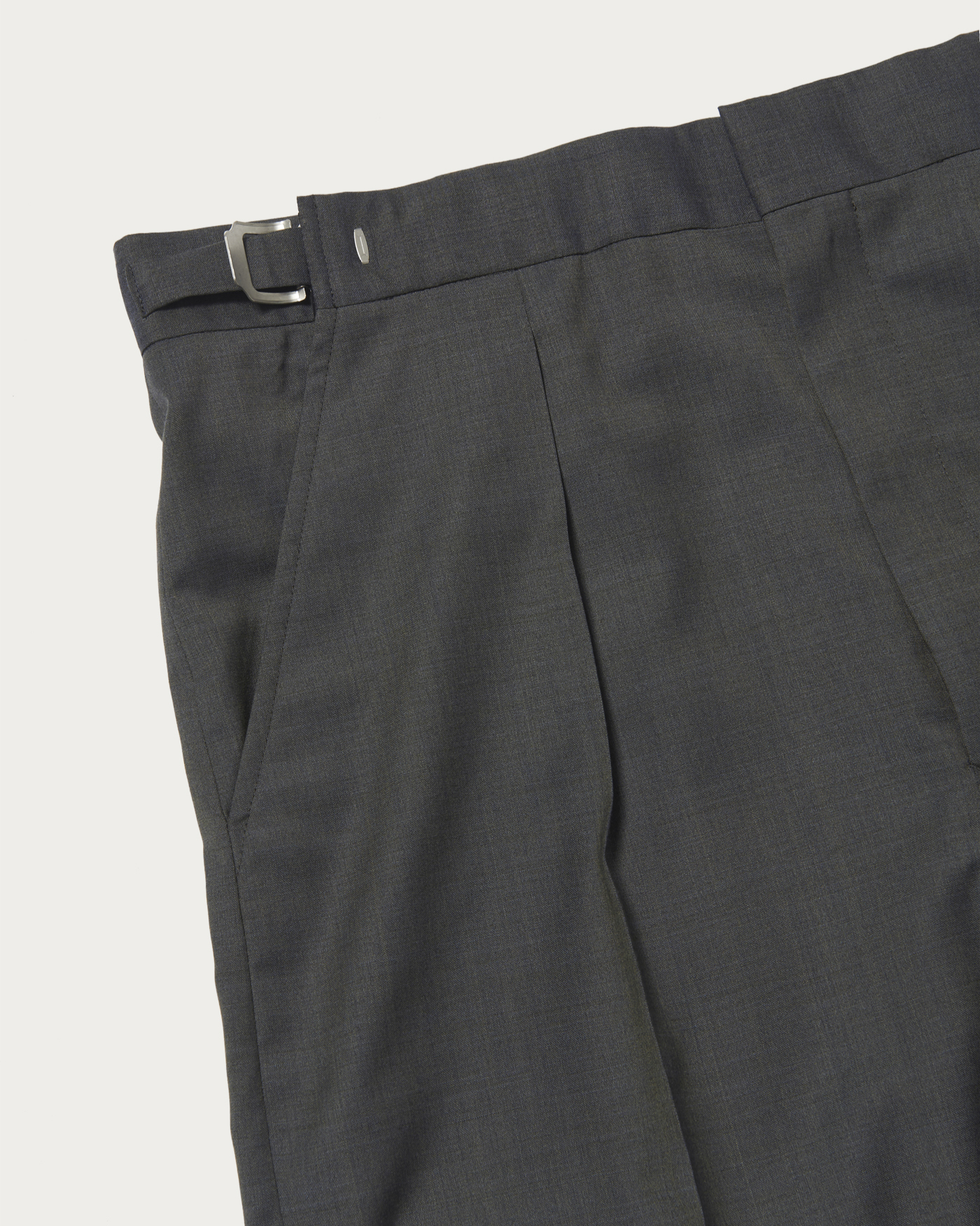 Using the supple wool-tro fabric from Italy's REDA company, this summer wool is exceptionally light, thin, and comfortable against the skin. These tuck trousers feature a rail-type side adjust buckle that allows you to adjust the waist size. With an inward tuck, the silhouette is wide-tapered. This item is a dress pant finished with a casual touch.