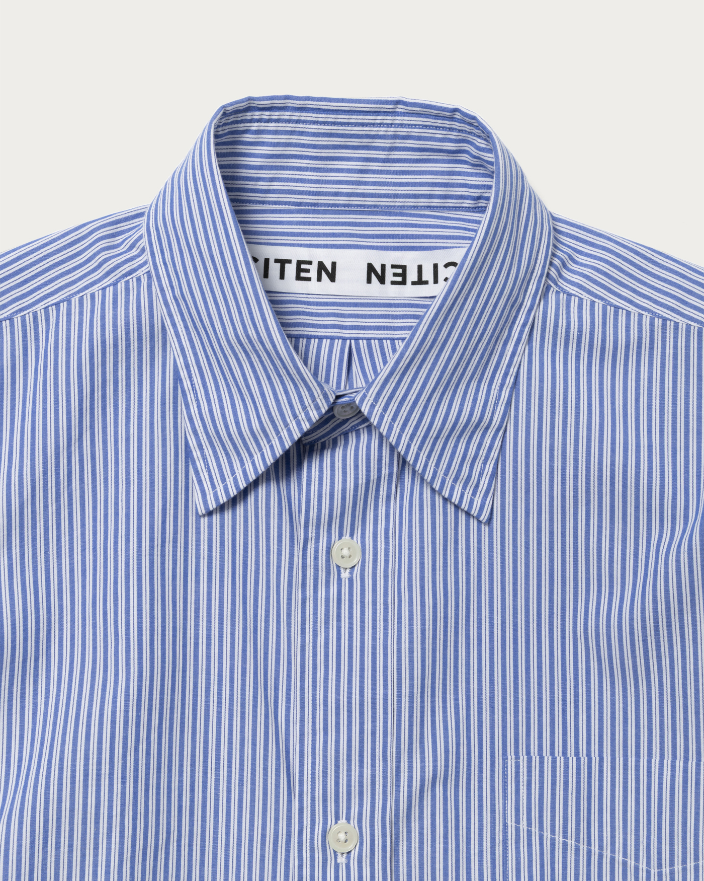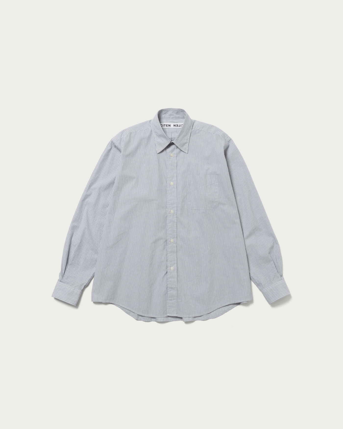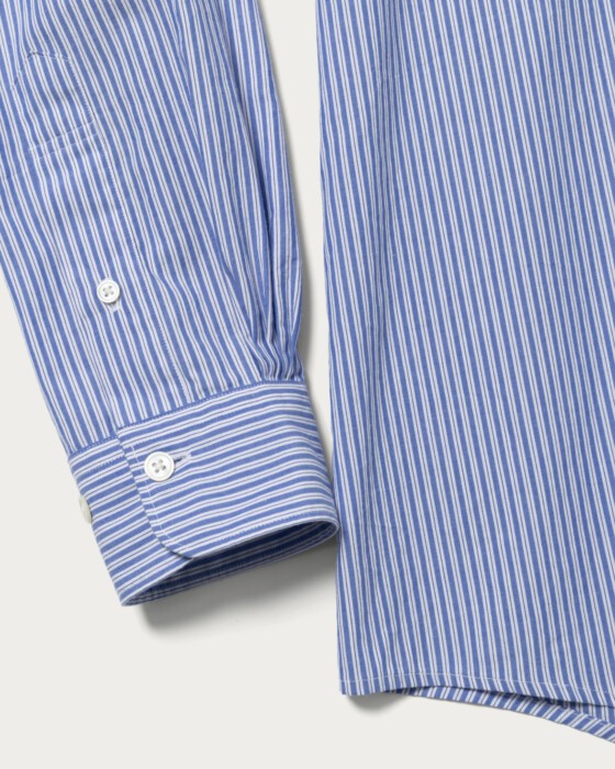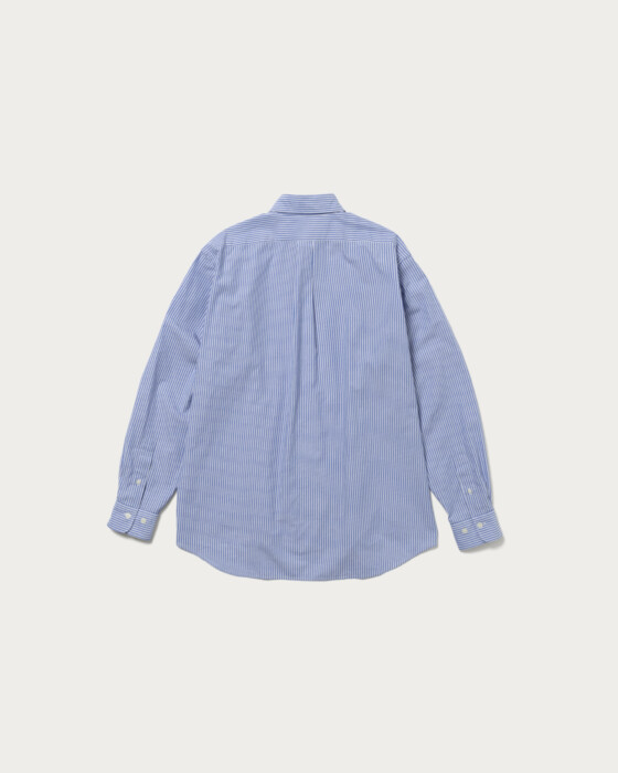 A regular collar shirt made from fine-count 100% cotton broad stripe fabric. It features a relaxed, voluminous feel with design details inspired by classic dress shirts.
