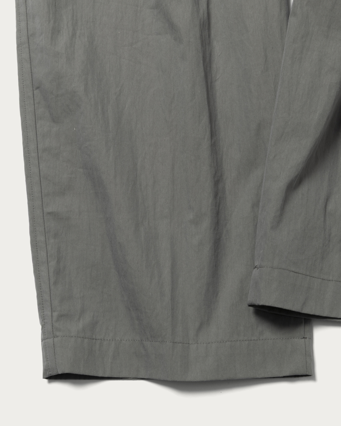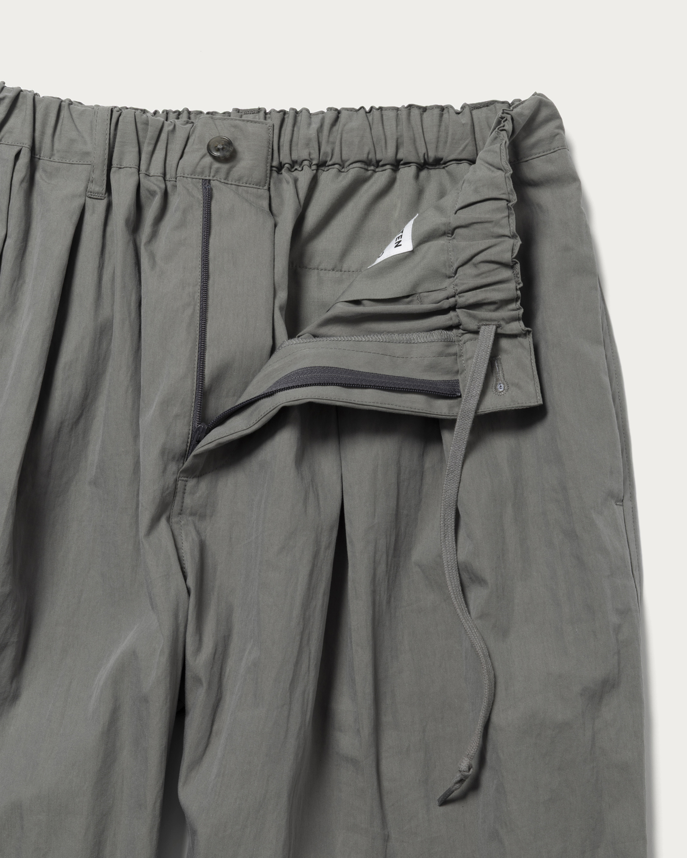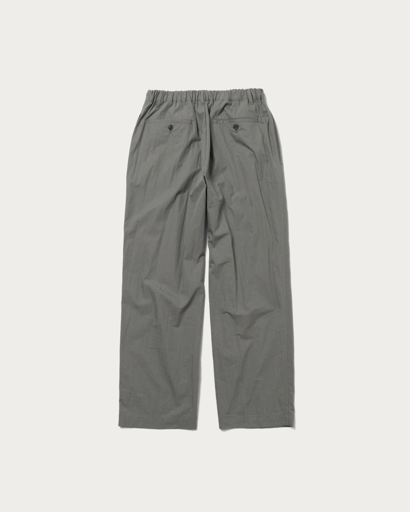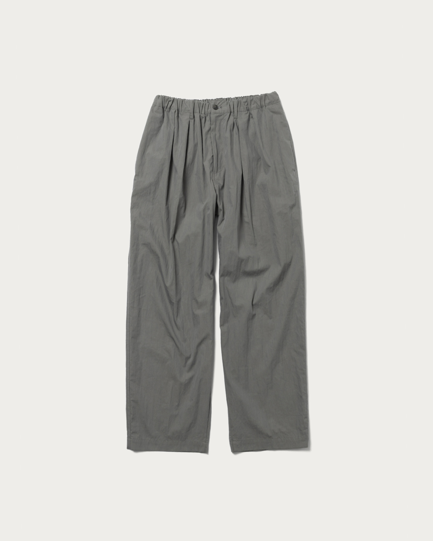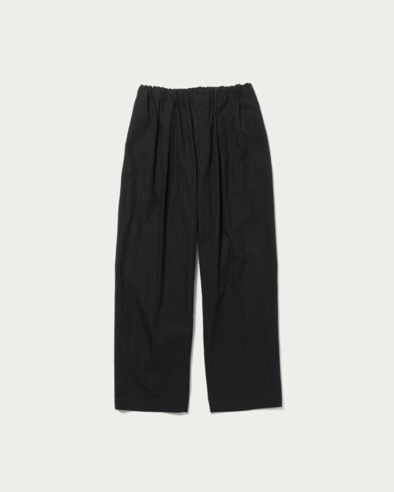 Easy pants made from a cotton-nylon blend. They feature a relaxed fit from the waist to the hem. The elastic waistband and drawstring offer versatile styling options. Additionally, the pleats and crease lines at the front give these easy pants a polished look.