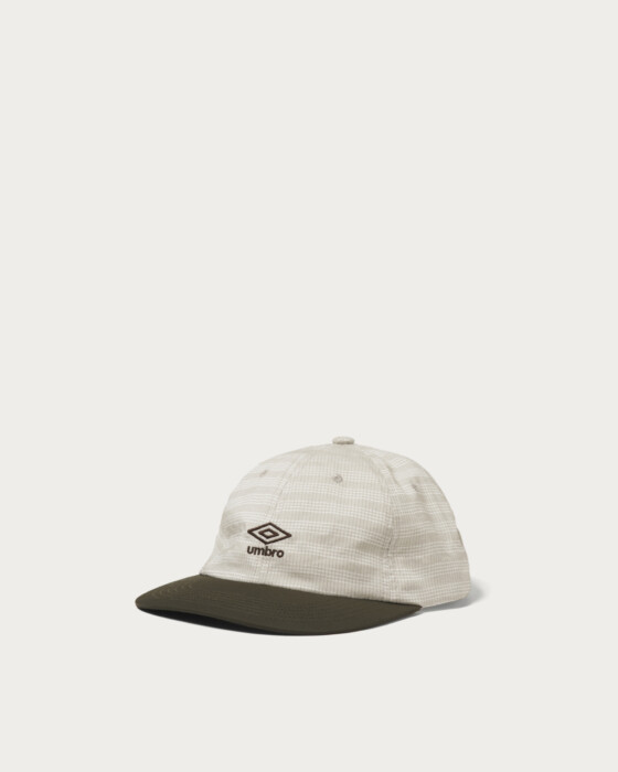 Based on the concept of "OUT OF THE PITCH," this exclusive collection is a modern reinterpretation of 〈UMBRO〉's archives. The crown features a check pattern that evokes a British mood, while the color contrast with the visor made of different materials adds an accent. This cap is a striking piece that fuses elements of sports and fashion.