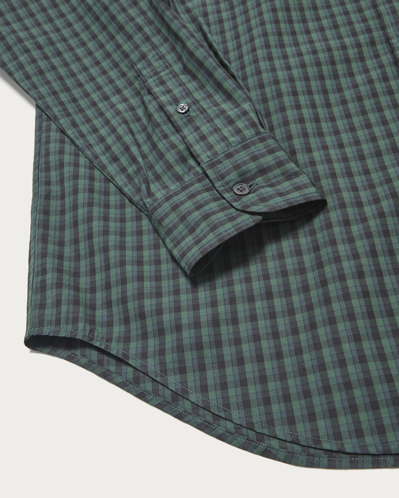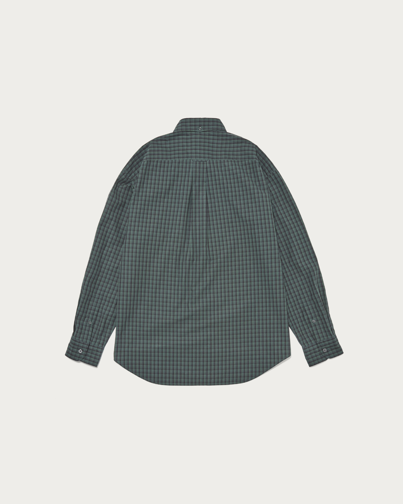 A button-down shirt characterized by a relaxed box silhouette. The pattern design focuses on the sleeve line and ease of arm movement by setting the armhole shallower relative to the body size. The fabric is woven by twisting two fine threads together, with different colors used for the warp and weft to achieve a rich and deep hue. Additionally, a special process gives the threads a plump texture, resulting in a light yet soft and fluffy feel. Its clean design makes it perfect to pair with denim, washed pants, or a blouson. This season, try wearing it as an inner layer with a blazer to enjoy a traditional style.