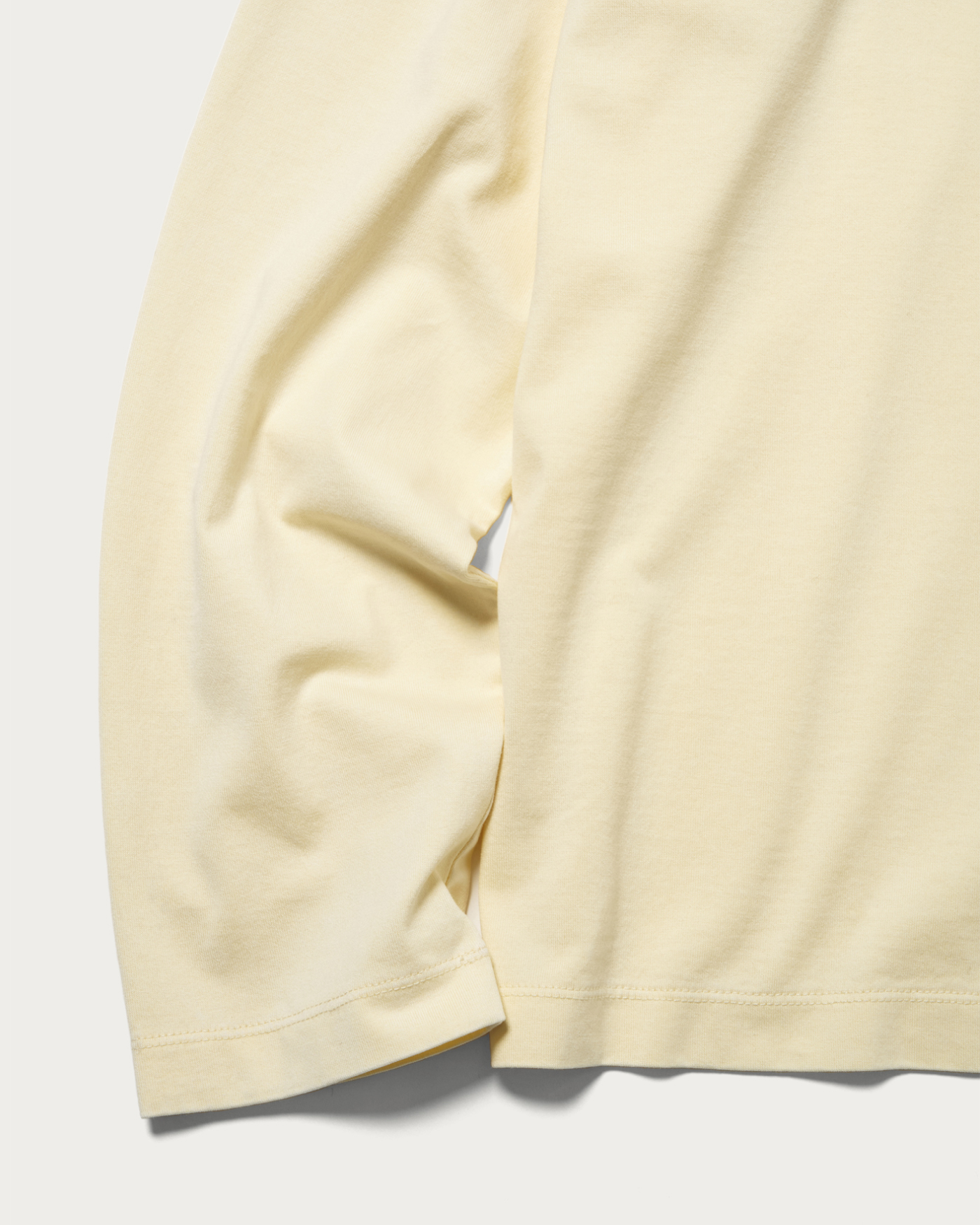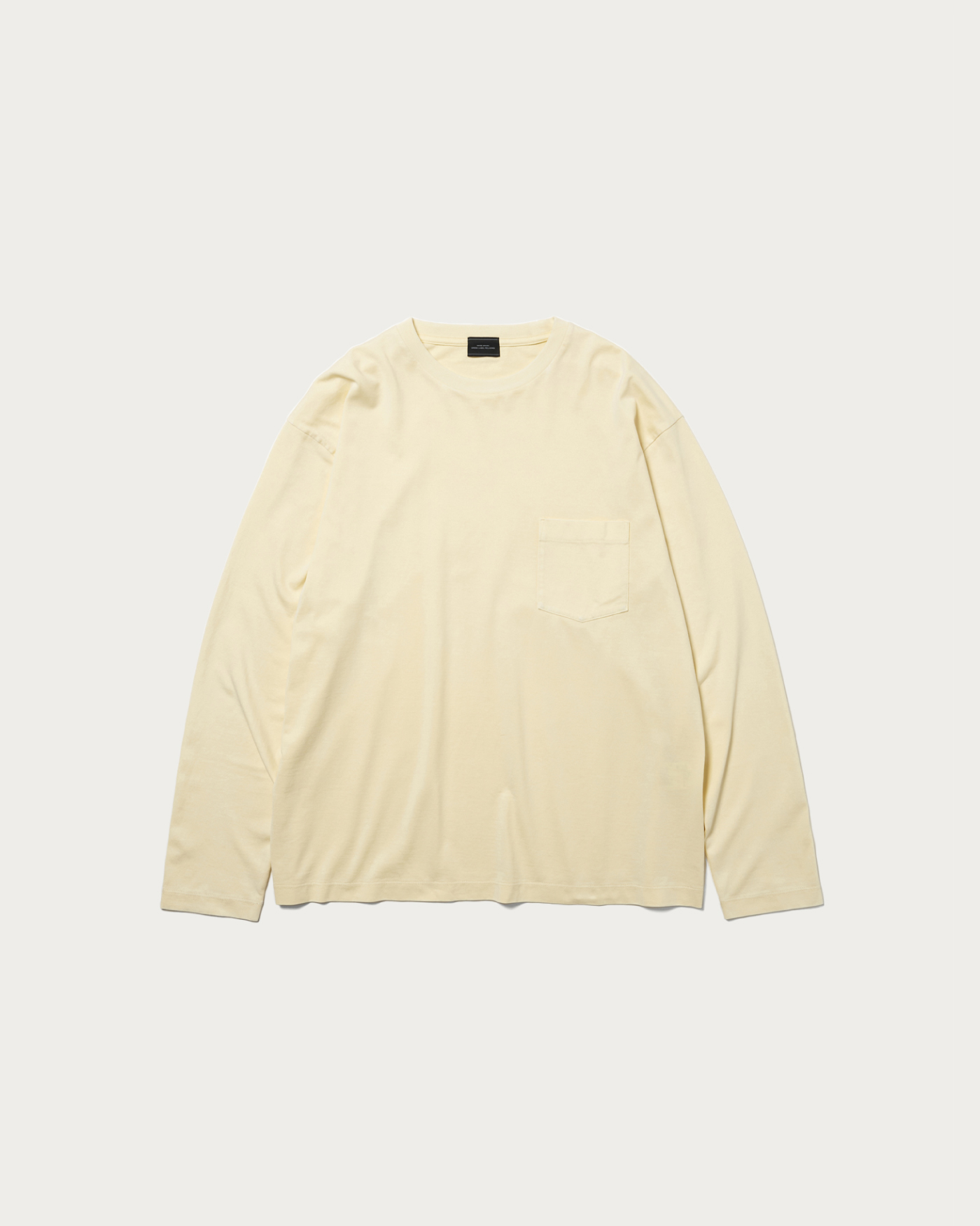 This long-sleeve cut and sewn top features a moderately relaxed silhouette. Made from a material that feels great on the skin, it can be worn on its own or layered. The bleach processing gives it a nicely faded look, while the fabric's sheen and smoothness provide a finish that is both slightly faded and not overly casual. With just the right amount of looseness, this piece creates a sophisticated, effortless impression.