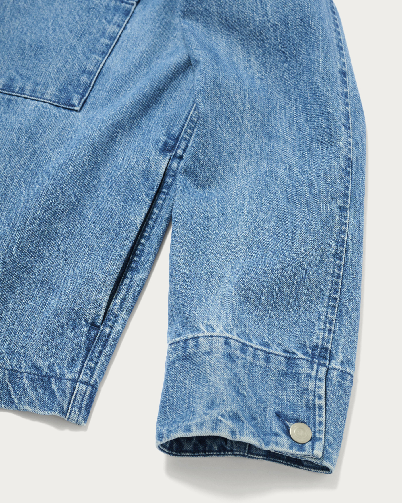 A denim coverall with a clean look, stripped of unnecessary details. It features a classic patch pocket on the chest, while the waist pockets are designed with seams to tone down the workwear feel. The shoulder width is set just right, offering a balanced silhouette that avoids being too loose. The material used is JAPAN DENIM, produced exclusively in the Sanbi region (Bizen, Bitchu, Bingo), known for its denim production, where the entire process from spinning to manufacturing is carried out. This material offers a unique texture and allows you to enjoy the aging process that enhances its character the more you wear it.