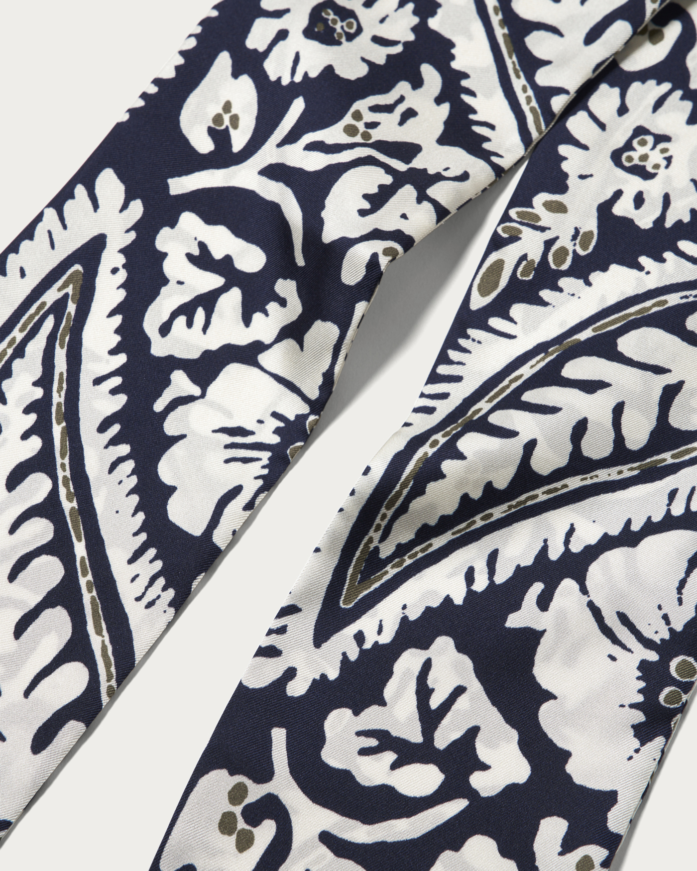 A scarf made from 100% silk twill material by the Italian factory brand 〈Bleck〉. It features the high-quality texture unique to one of the world's leading silk-producing regions and an attractive chic line design. Simply incorporating it into a simple casual style elevates your look to one of refined elegance.