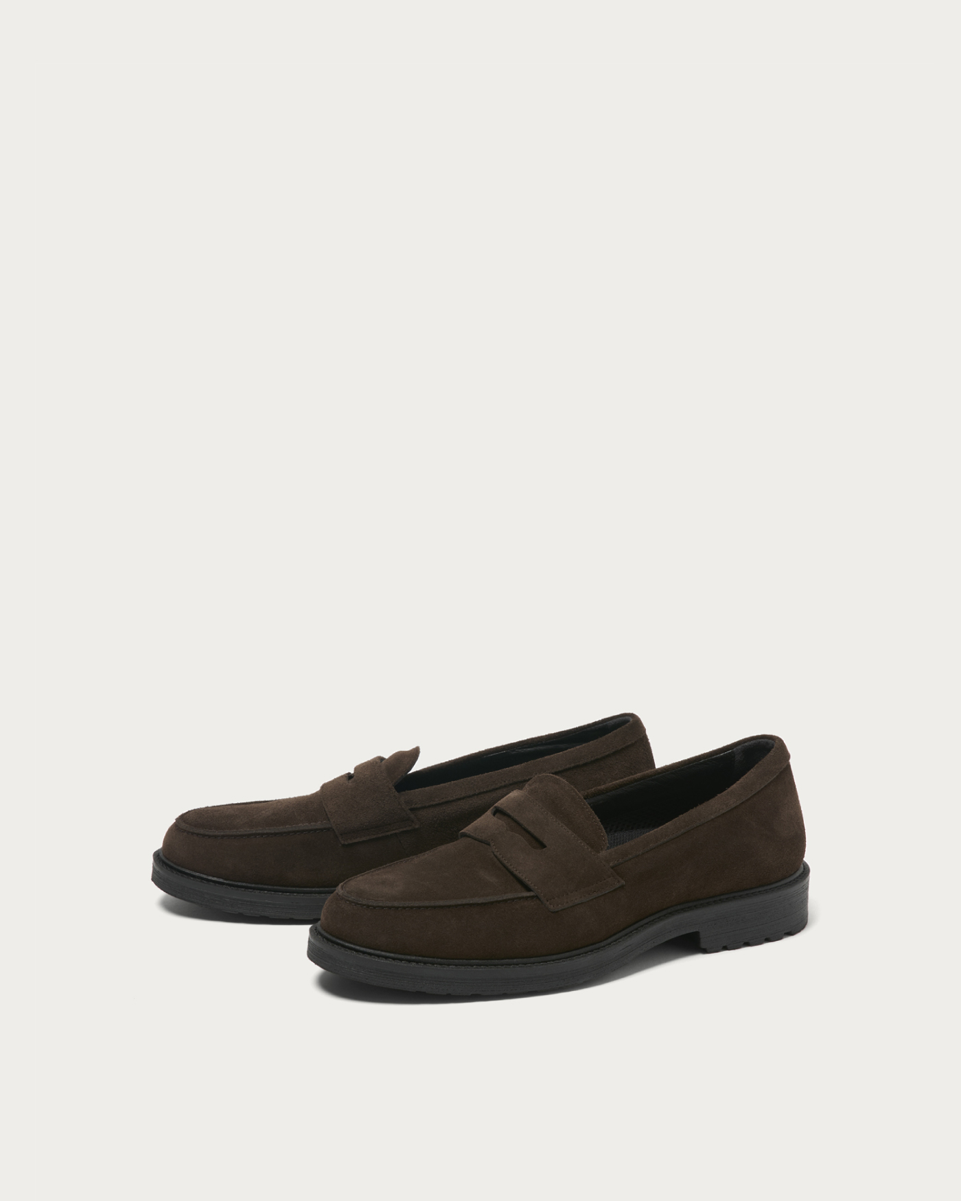 A new model of loafers has arrived, combining an authentic look with the comfort of sneakers in a water-repellent hybrid leather shoe. These elegant suede leather penny loafers feature a tank sole for a light and airy impression. With a cup insole and mesh lining, they offer a comfortable fit, making them versatile loafers you can confidently wear even on rainy days.