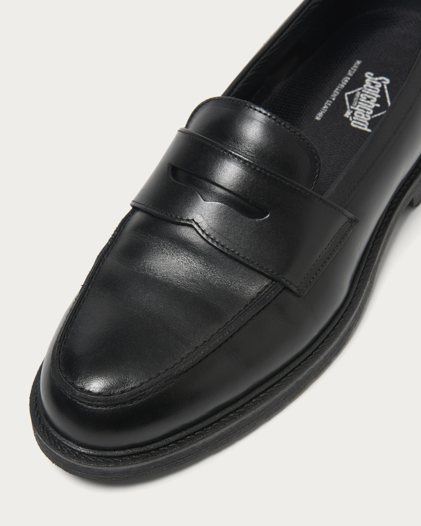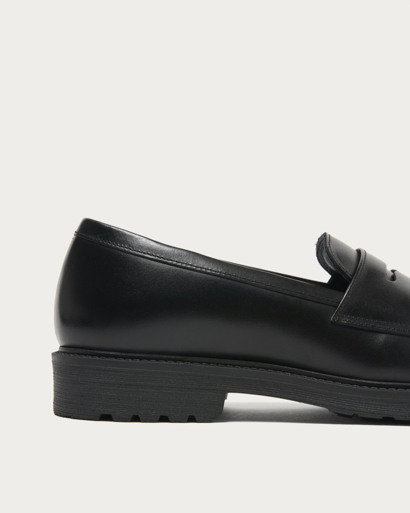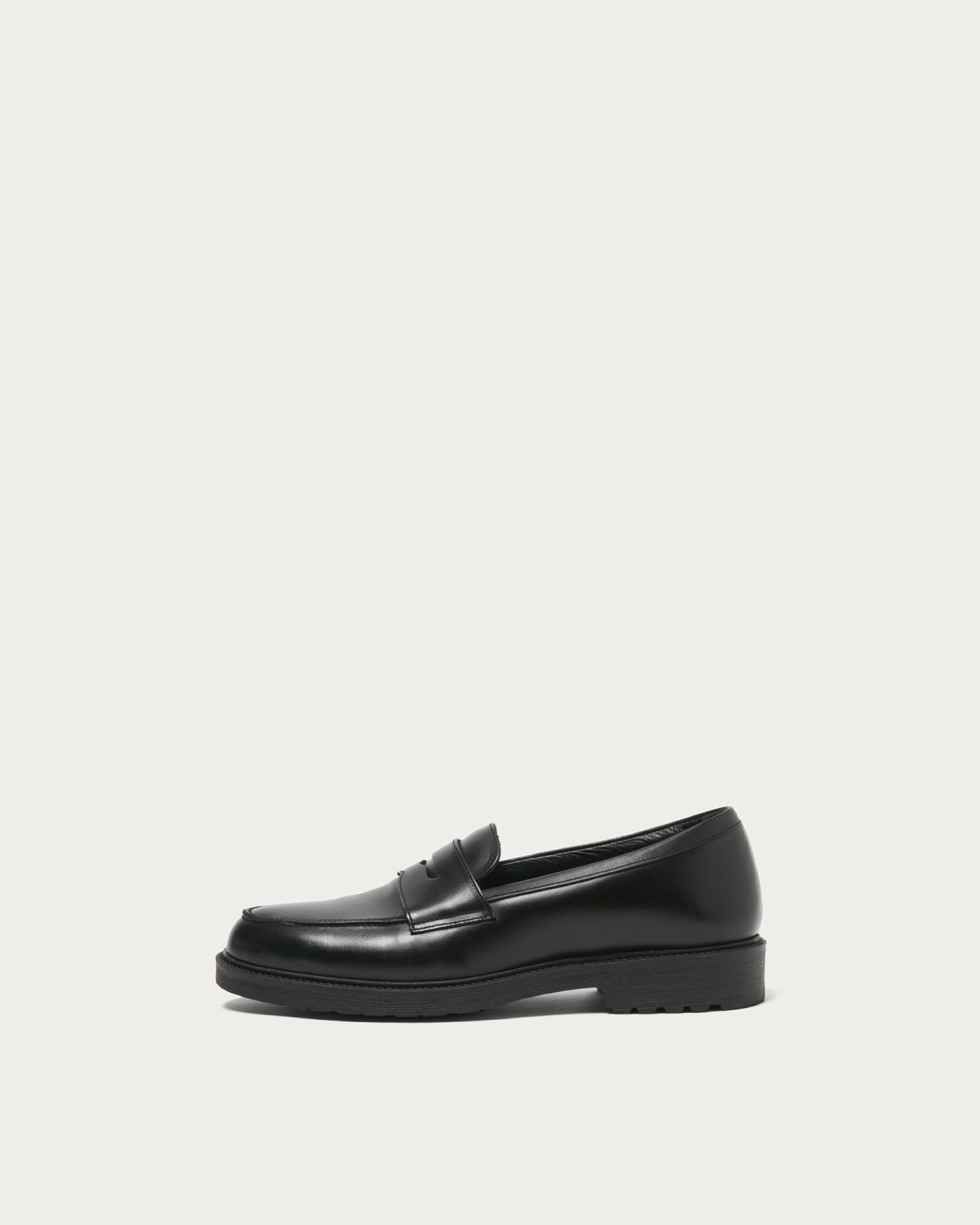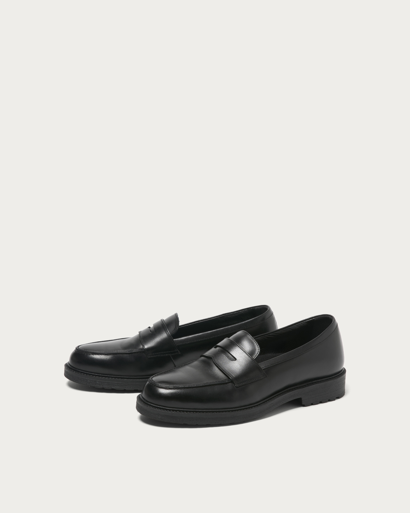 Introducing the black smooth leather loafers, a water-repellent hybrid leather shoe that combines an authentic look with the comfort of sneakers. The elegant and glossy leather upper adds a refined touch to your feet, while the lightweight tank sole creates a modern balance. With a comfortable fit provided by the cup insole and mesh lining, these versatile loafers can be worn stress-free even on rainy days.