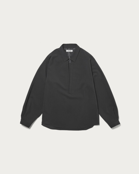 The pullover shirt from 〈monkey time〉 is made with RENU tropical material, a staple fabric for spring and summer. It features a distinctively deep V-zone, perfect for creating a spring-like style that showcases your inner layers.