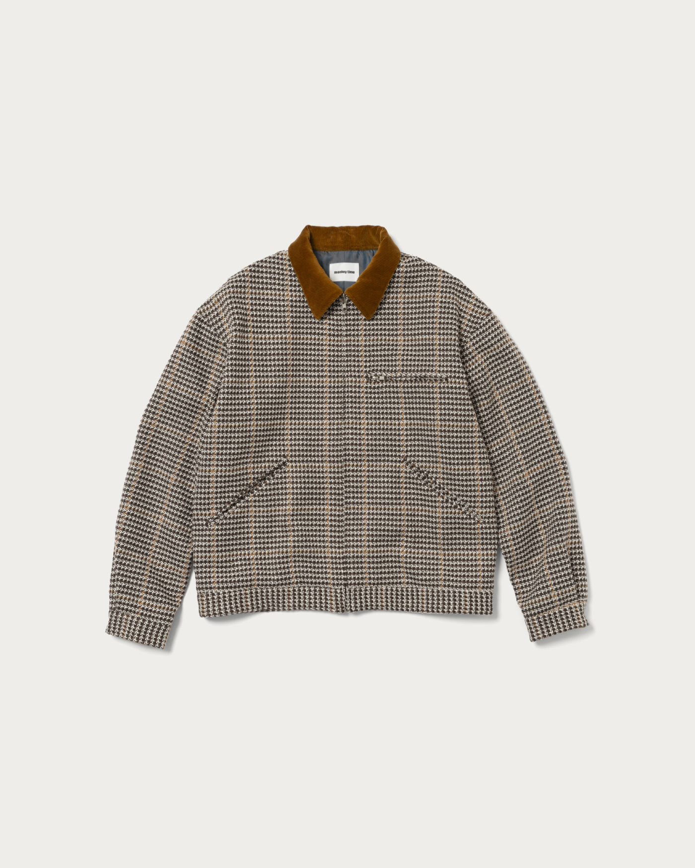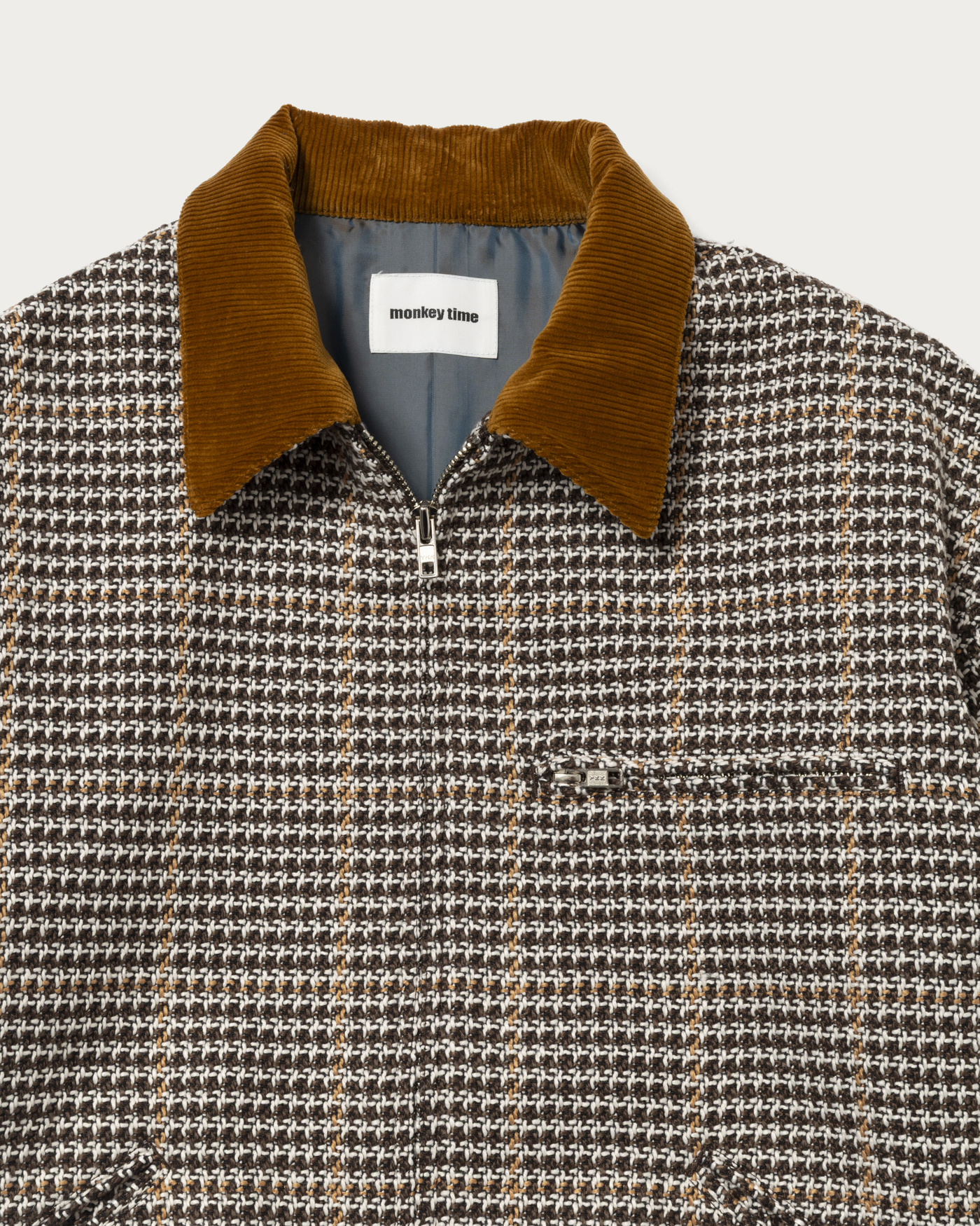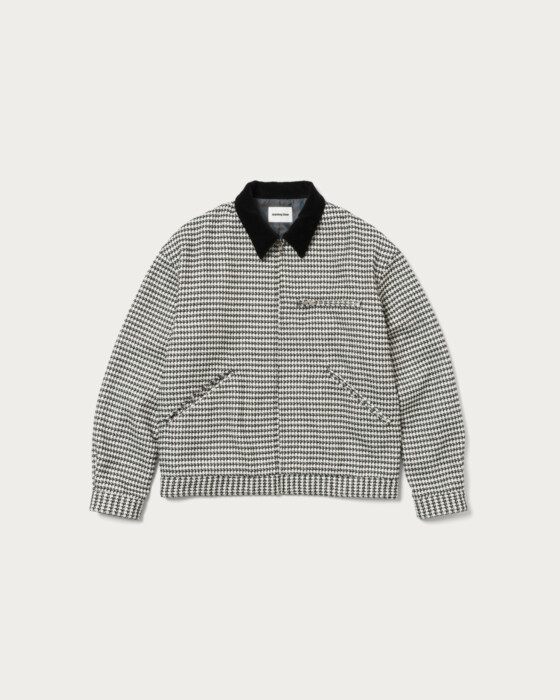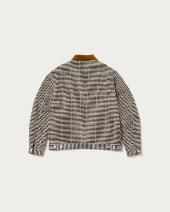 A work jacket made from an original check fabric woven with thick yarns. The natural and deep texture unique to thick yarns is its greatest feature. The collar is made of corduroy.