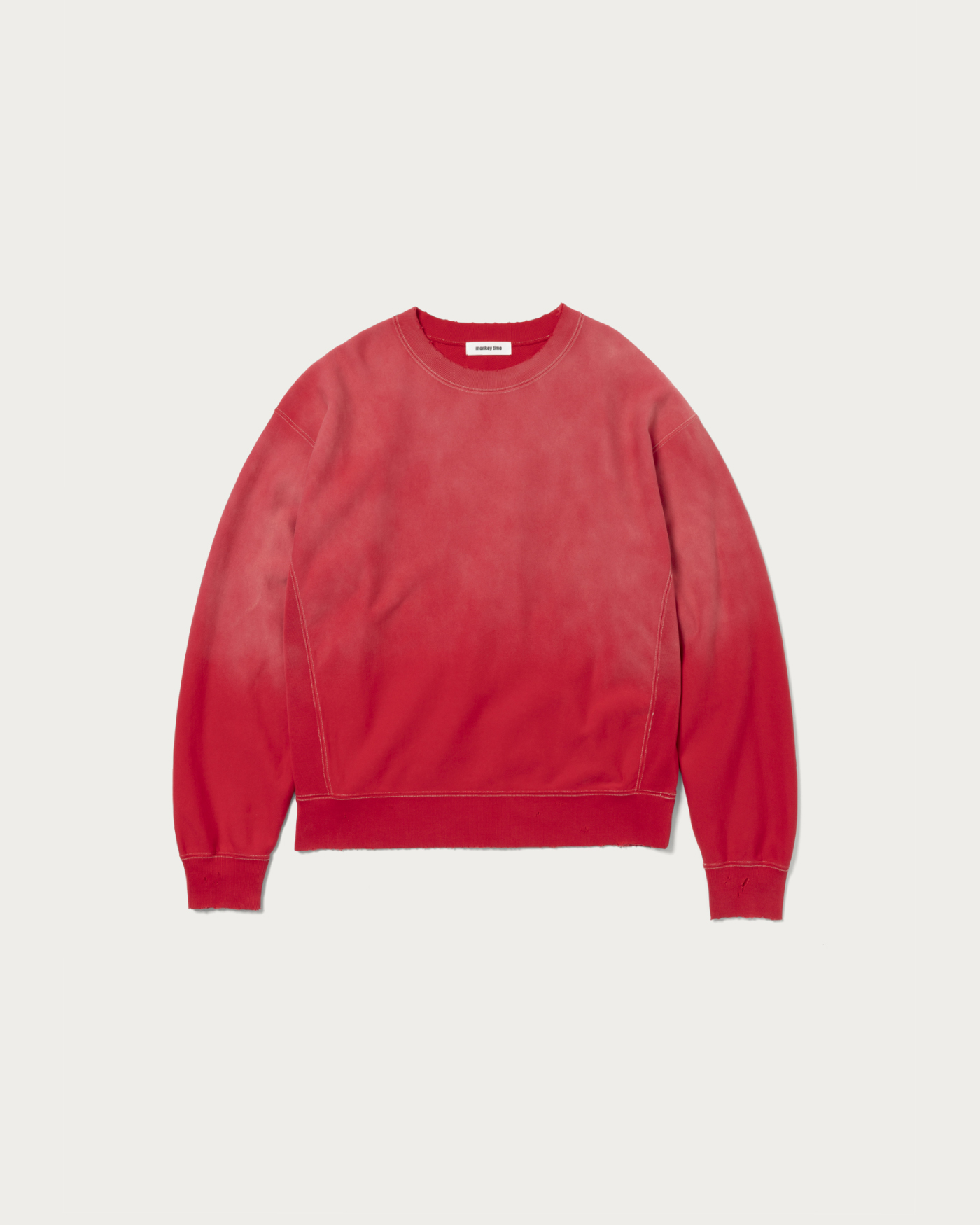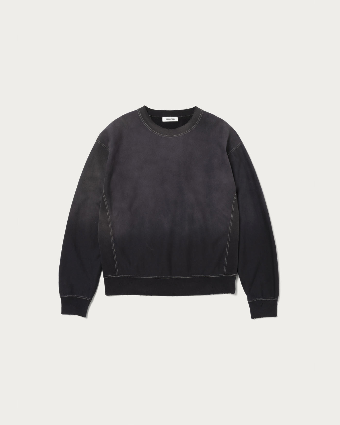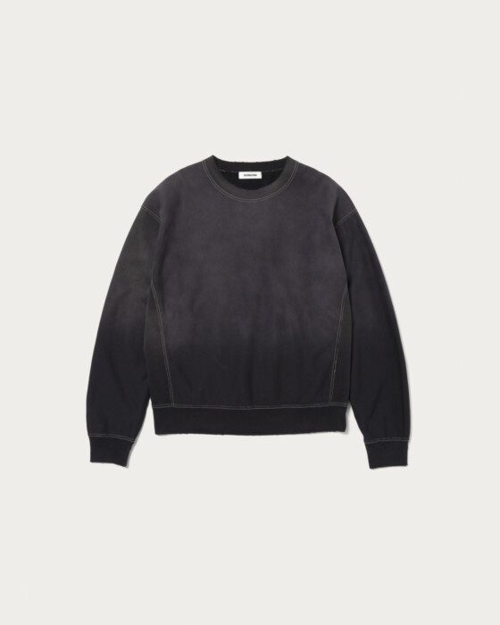 A sweat crew neck made from a sturdy, thick fabric that is perfect for three seasons other than summer. It features distinctive fading from damage processing and sunburn processing throughout. With a relaxed fit, it's a standout piece even when worn alone during the season.