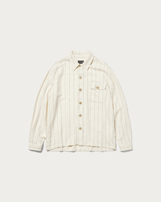 The base is a wartime model loco jacket. As with the previous collaboration, it features a pivot sleeve pattern that ensures both a wide range of motion and a beautiful silhouette. The finish is a one-wash specification. For the details, a long "L" engraved tack button, coveted by vintage enthusiasts, is used for the top button, further enhancing its classic appearance.