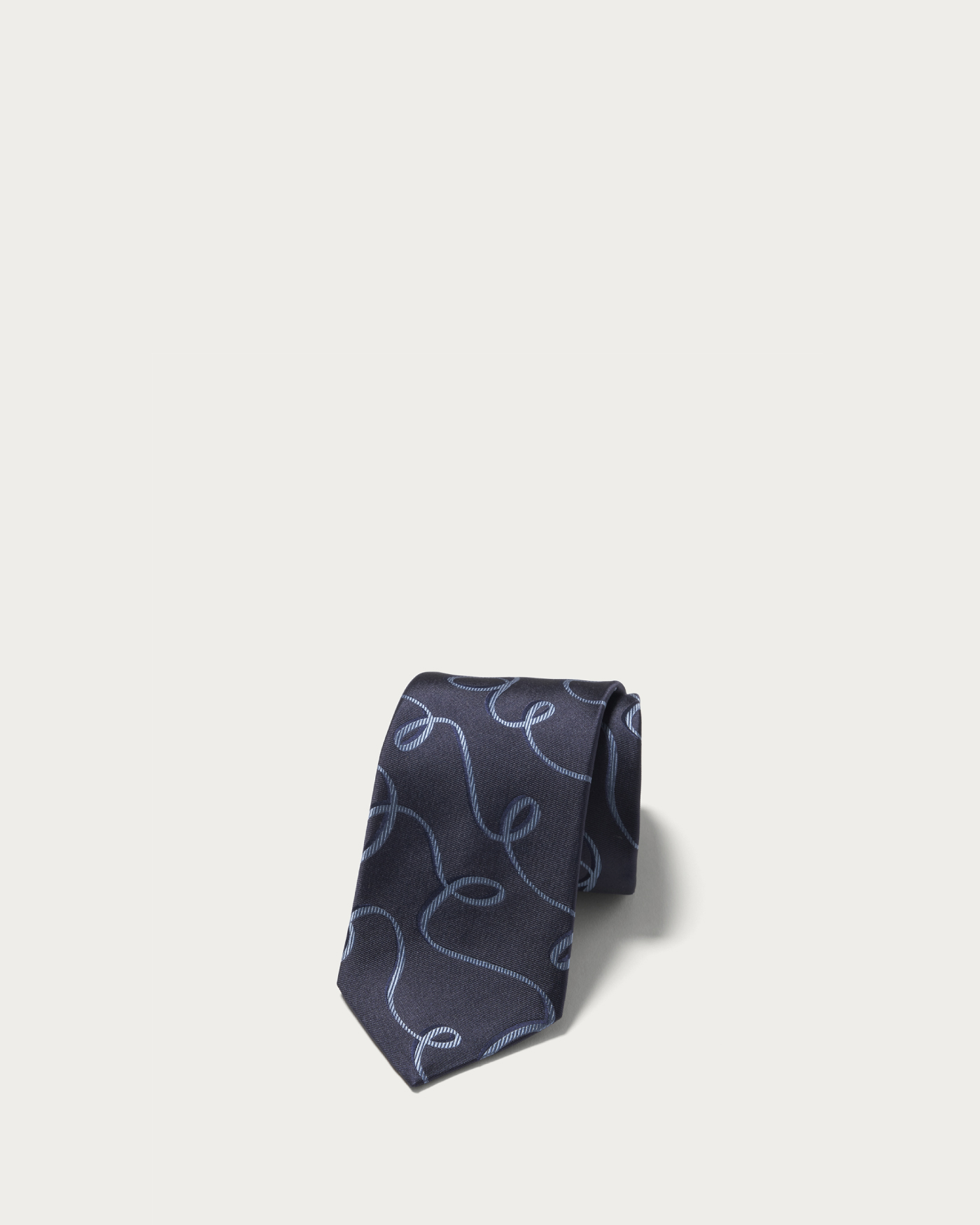 A necktie with a bold jacquard weave that offers a light impression without feeling heavy. This season's grayish coloring naturally blends into the V-zone, making it a perfect match not only for navy suits but also for brown suits.