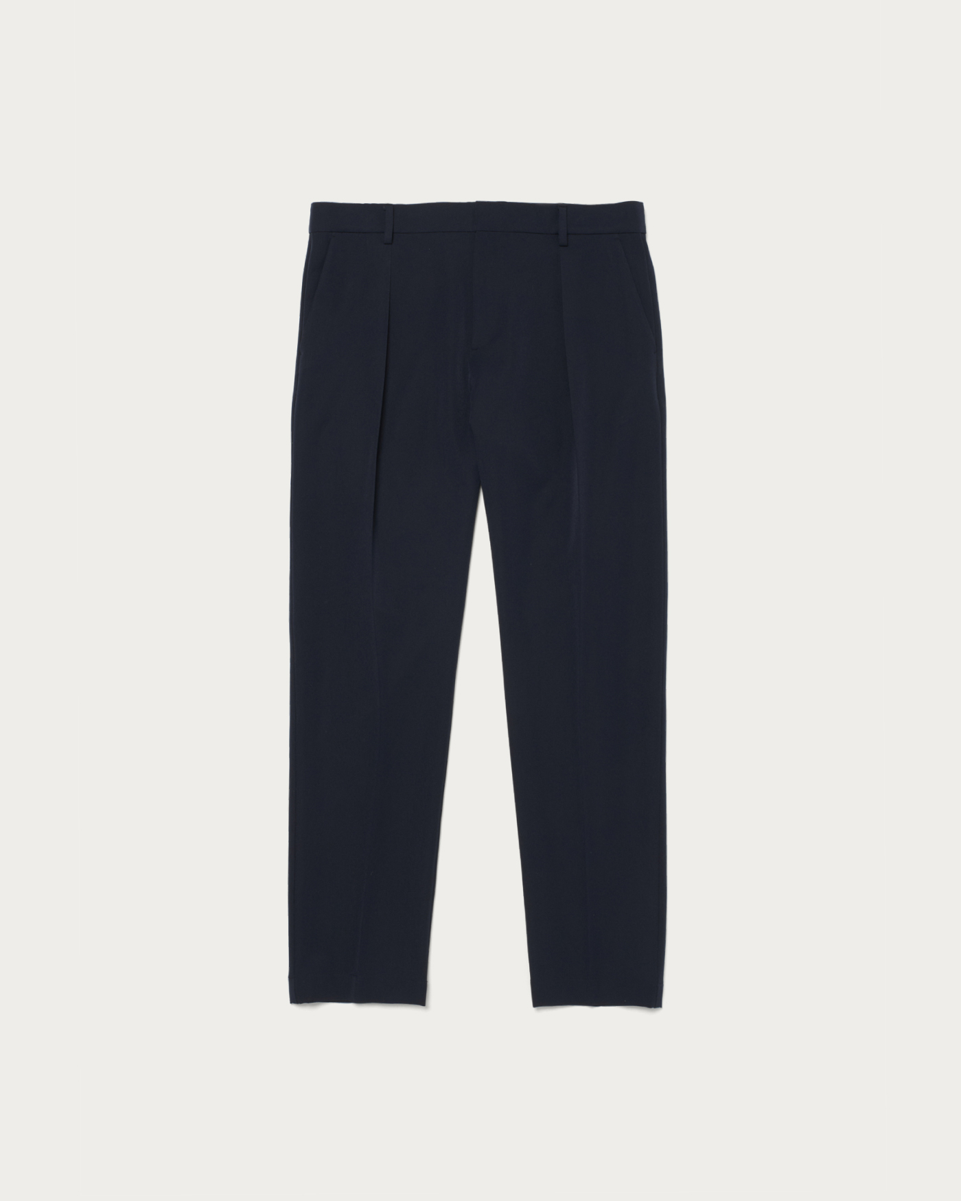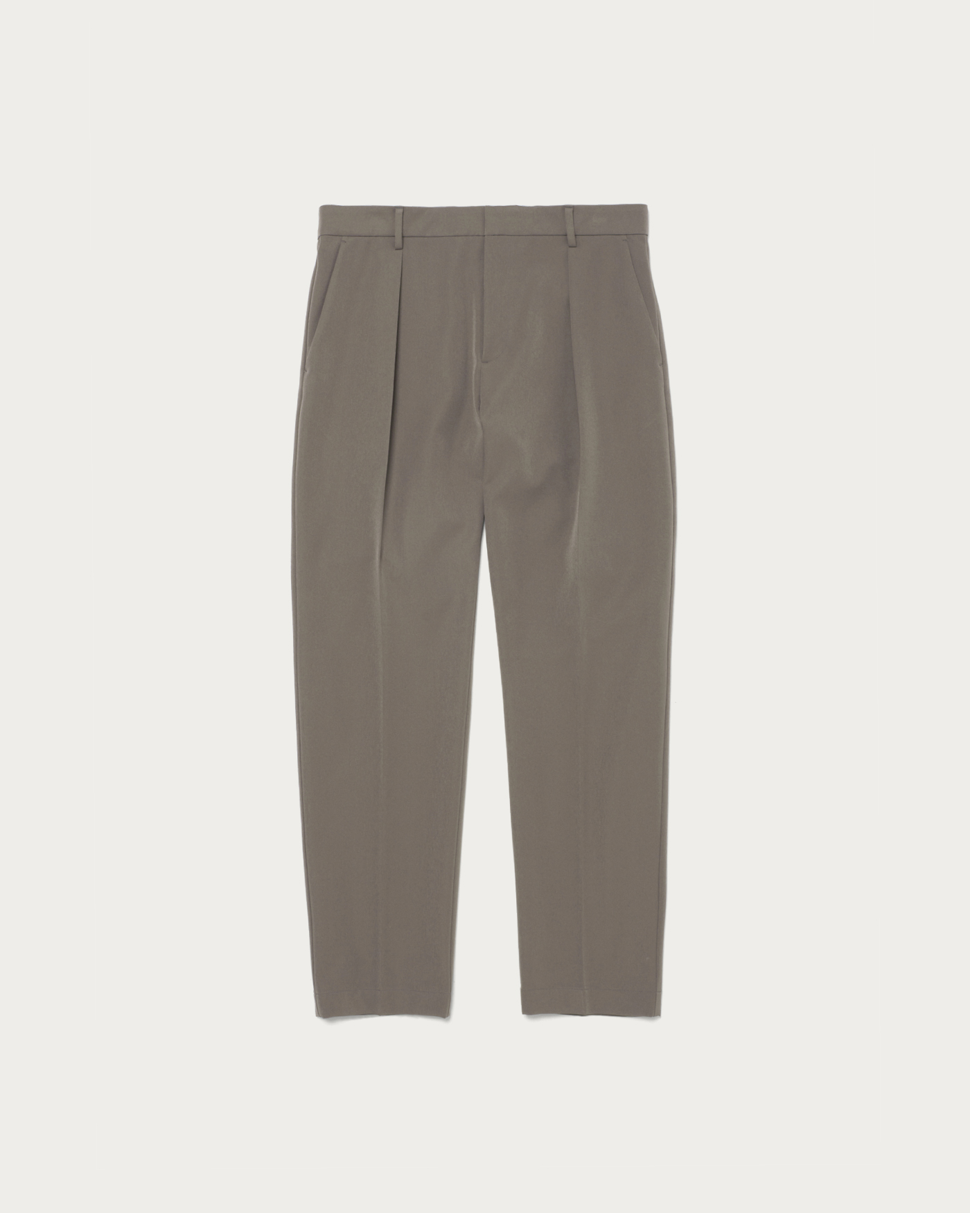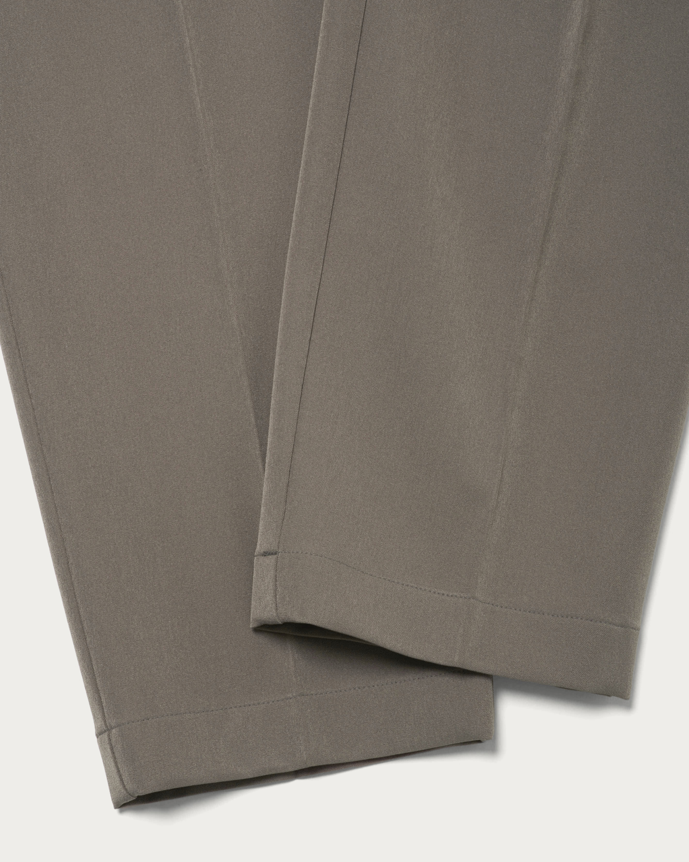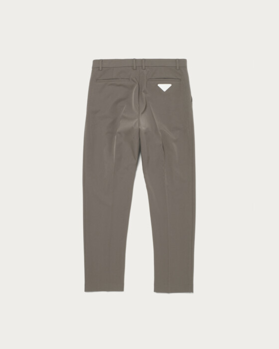 Using high-tension twill fabric, these one-pleat pants offer a comfortable fit. The waist features a jacquard elastic band with moderate stretch, elegantly showcasing the brand logo. A non-slip print prevents shirts from riding up. A brand icon patch is placed below the right back pocket.