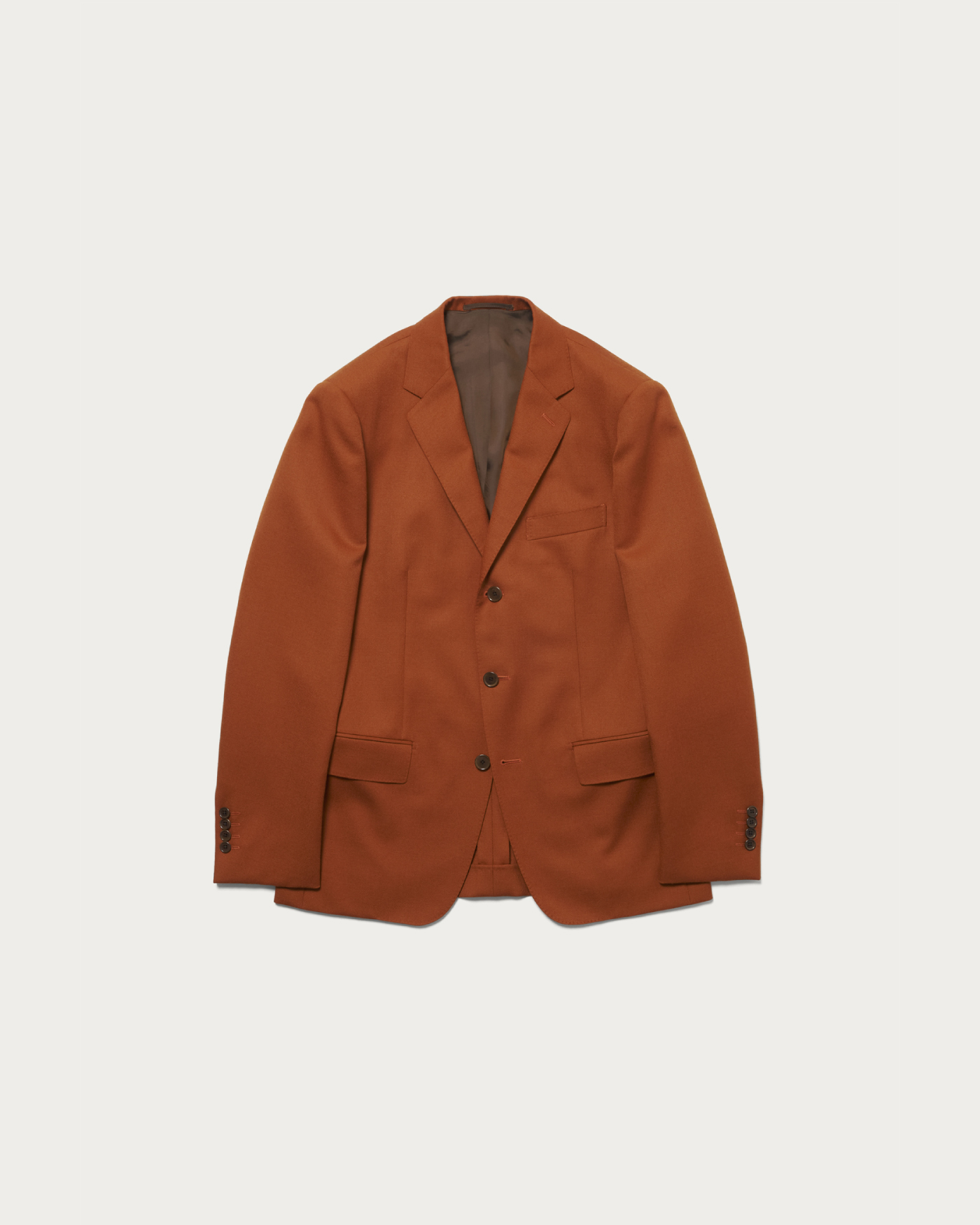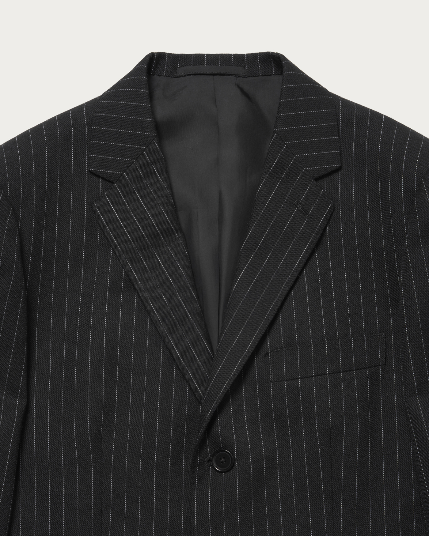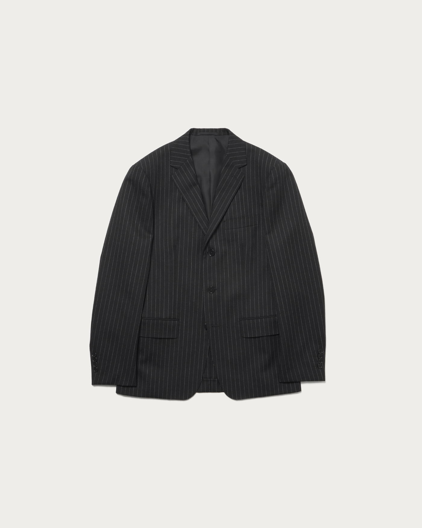 Collection Supervised by Stylist Masataka Hattori.This jacket features a single three-button design with side vents, based on a tight sizing. It incorporates narrow lapels, creating a sharp and modern impression. The jacket is characterized by lightly padded shoulders that form a straight shoulder line, with moderately built-up shoulder tips. The short-length silhouette gives the entire piece a sleek and refined look, offering a lively and sophisticated balance.