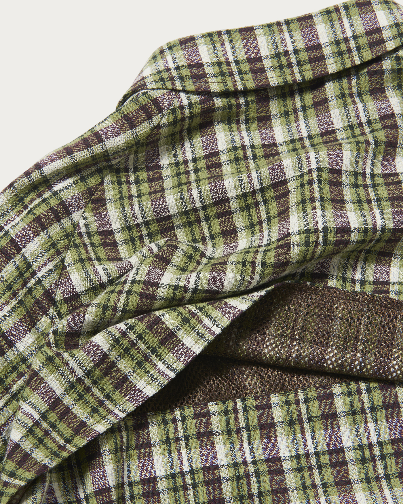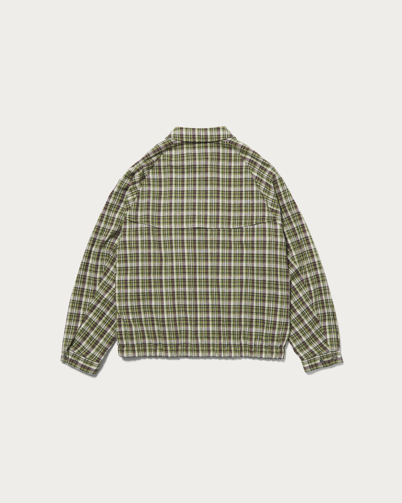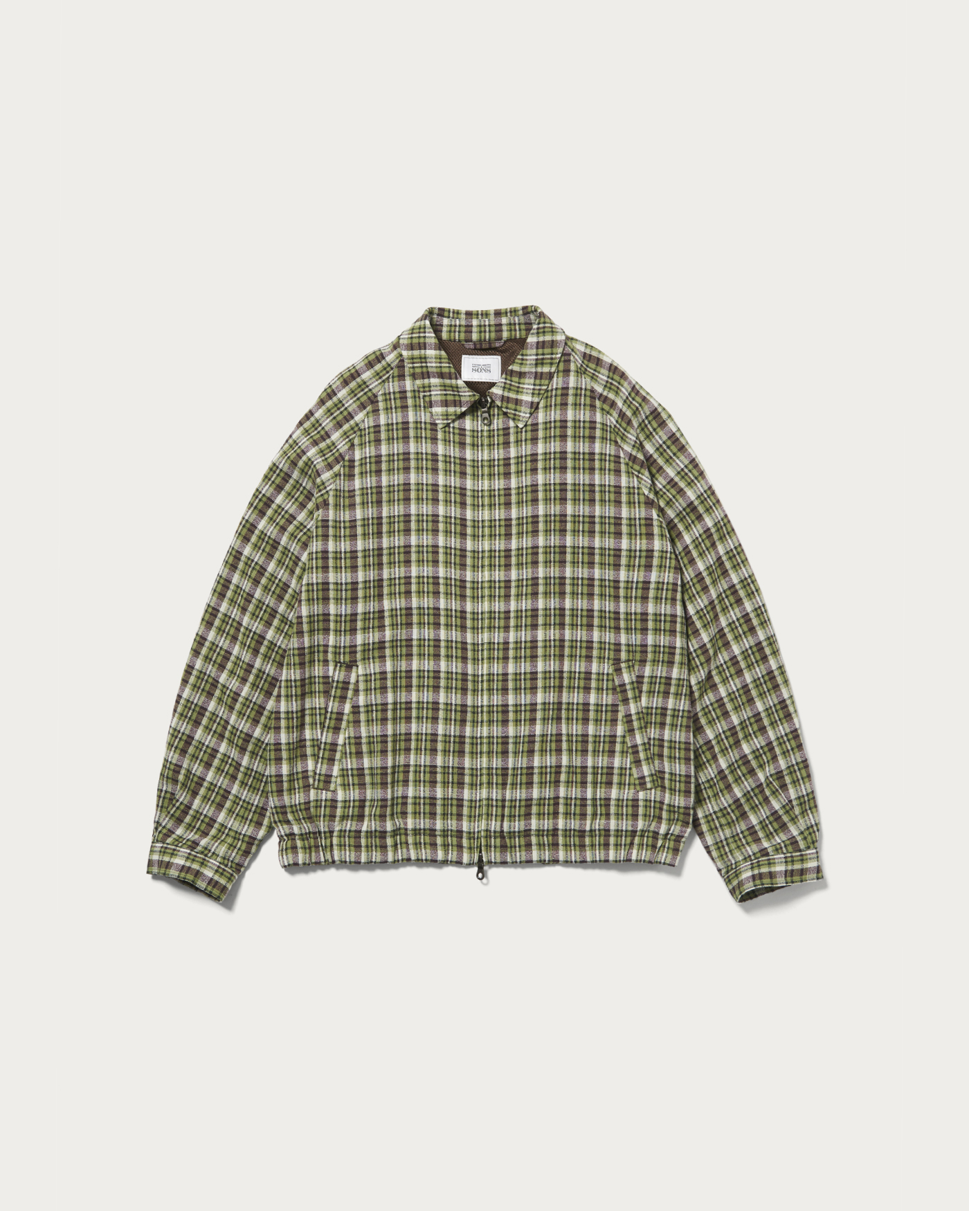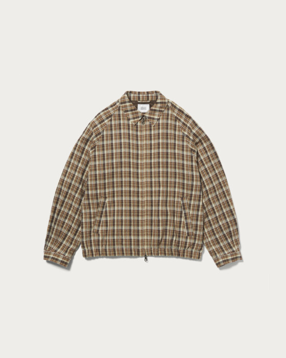This blouson features a moderate volume in the body width and armholes, characterized by an elegant drape. Based on a minimal check pattern design, a subtle accent is added with a panel switch on the back. It combines a perfect presence with sophistication, bringing a natural depth to your styling.