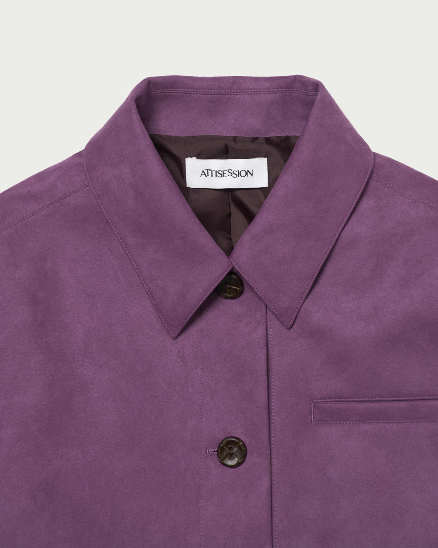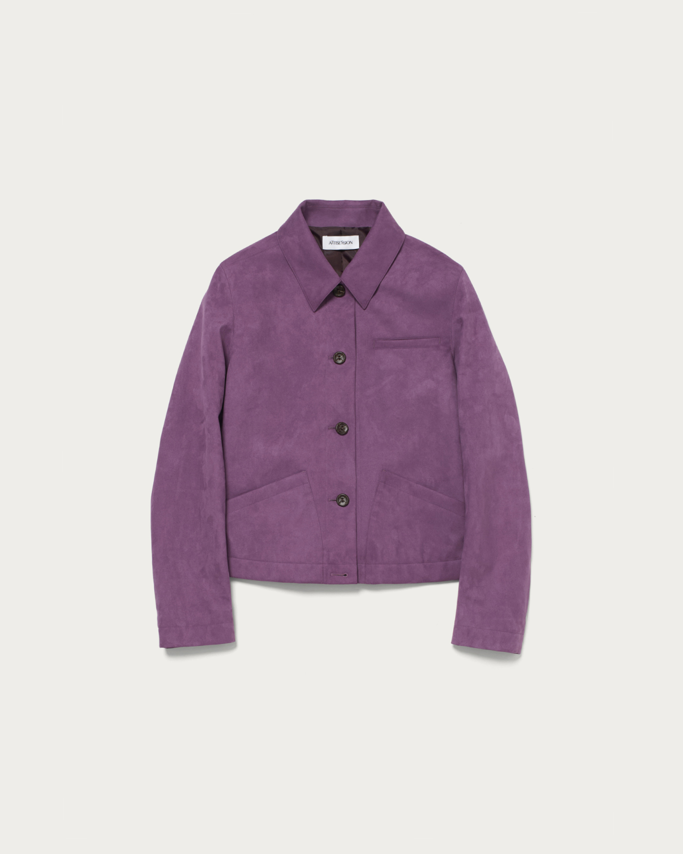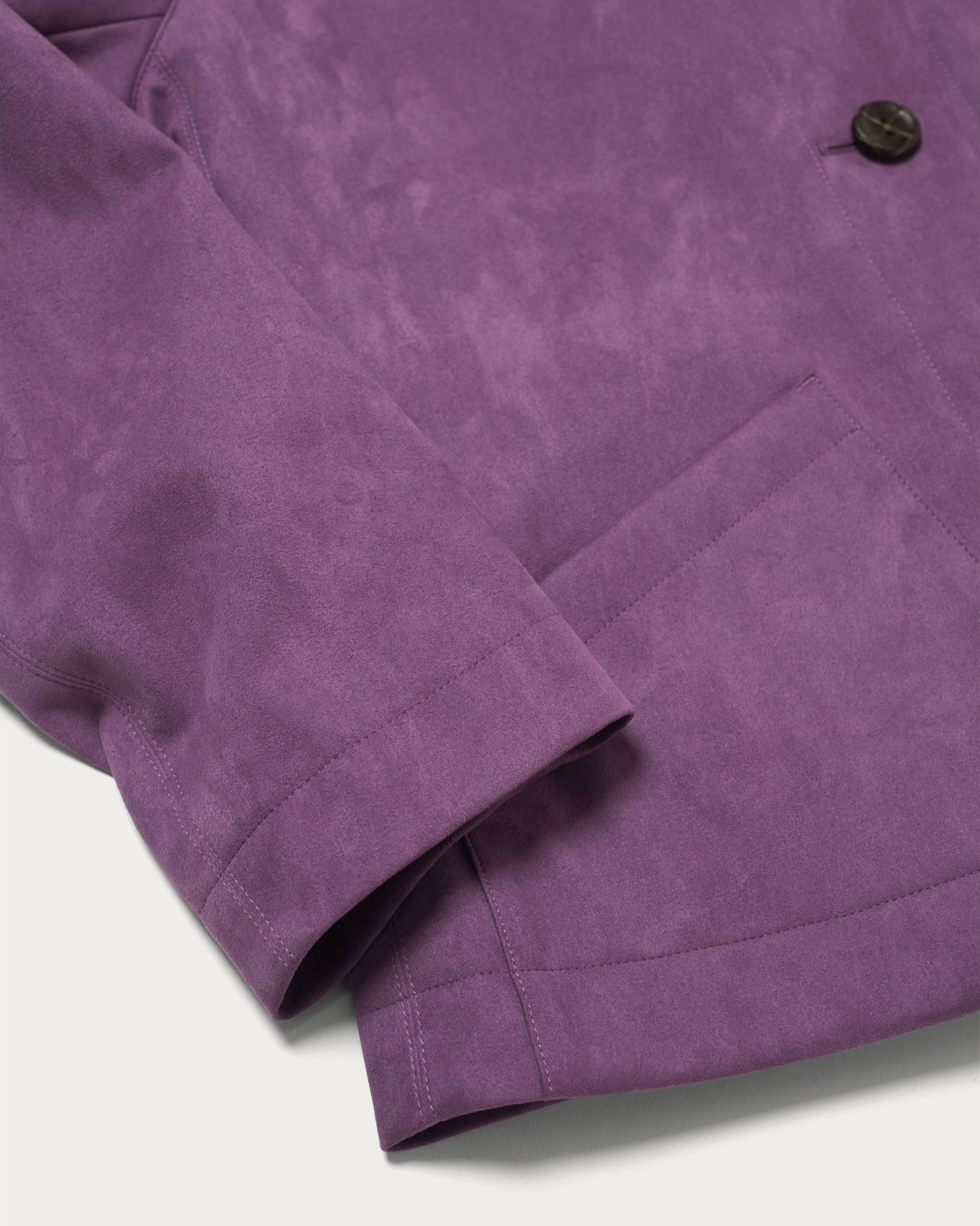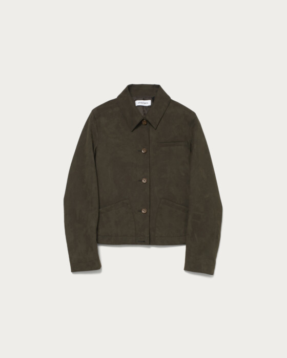 A spring outerwear piece made from a suede-like material with a vintage feel, featuring pocket details that add just the right amount of accent. Its compact silhouette is easy to style without being overly oversized, and it boasts a soft touch and smooth texture reminiscent of genuine leather. Lightweight and comfortable to wear, this piece is versatile enough to pair with both casual and more polished looks.