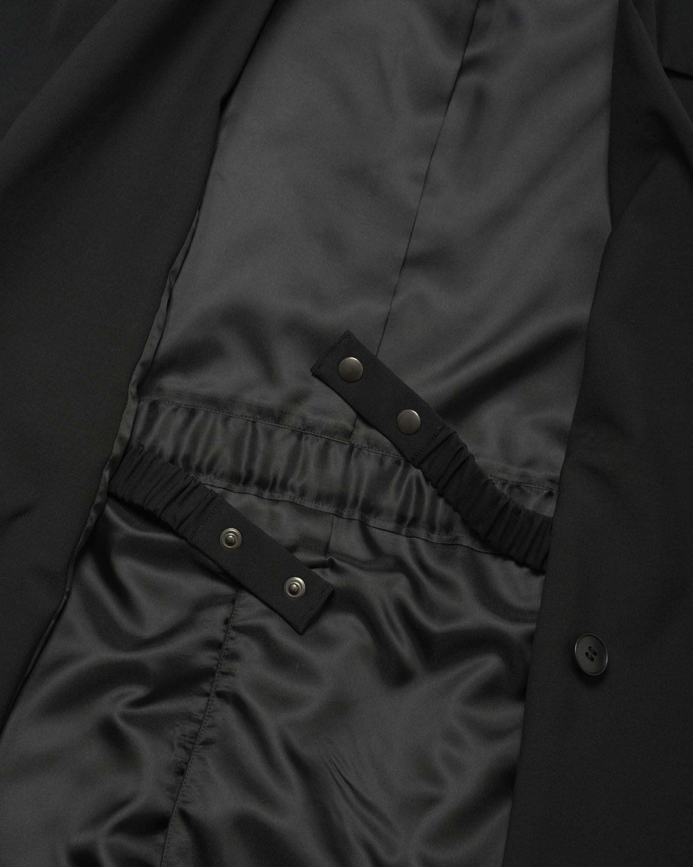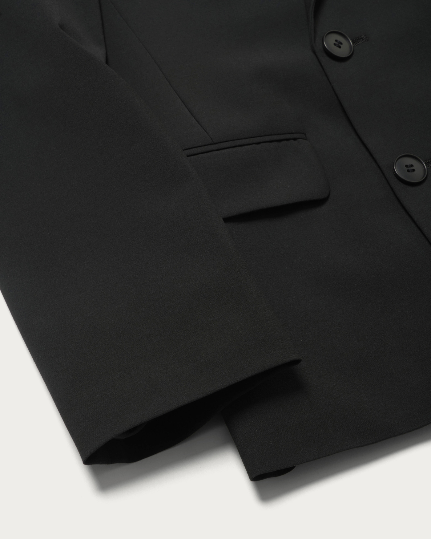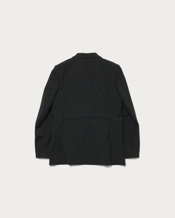 The double-breasted boxy silhouette jacket features a design where a matching fabric belt is fastened on the inside at the waist, creating a sleek impression. Made from a smooth, solid tropical fabric, it is perfect not only for a coordinated set-up but also for casual styling with denim. This piece adds a touch of modern flair to your spring wardrobe.