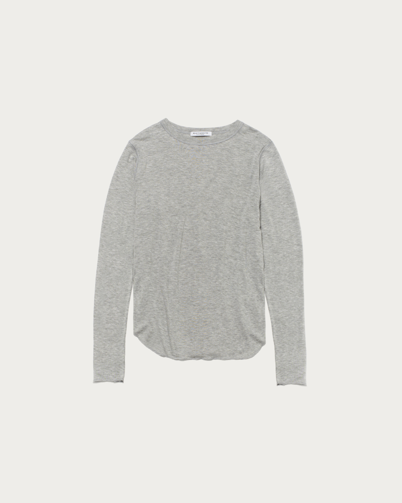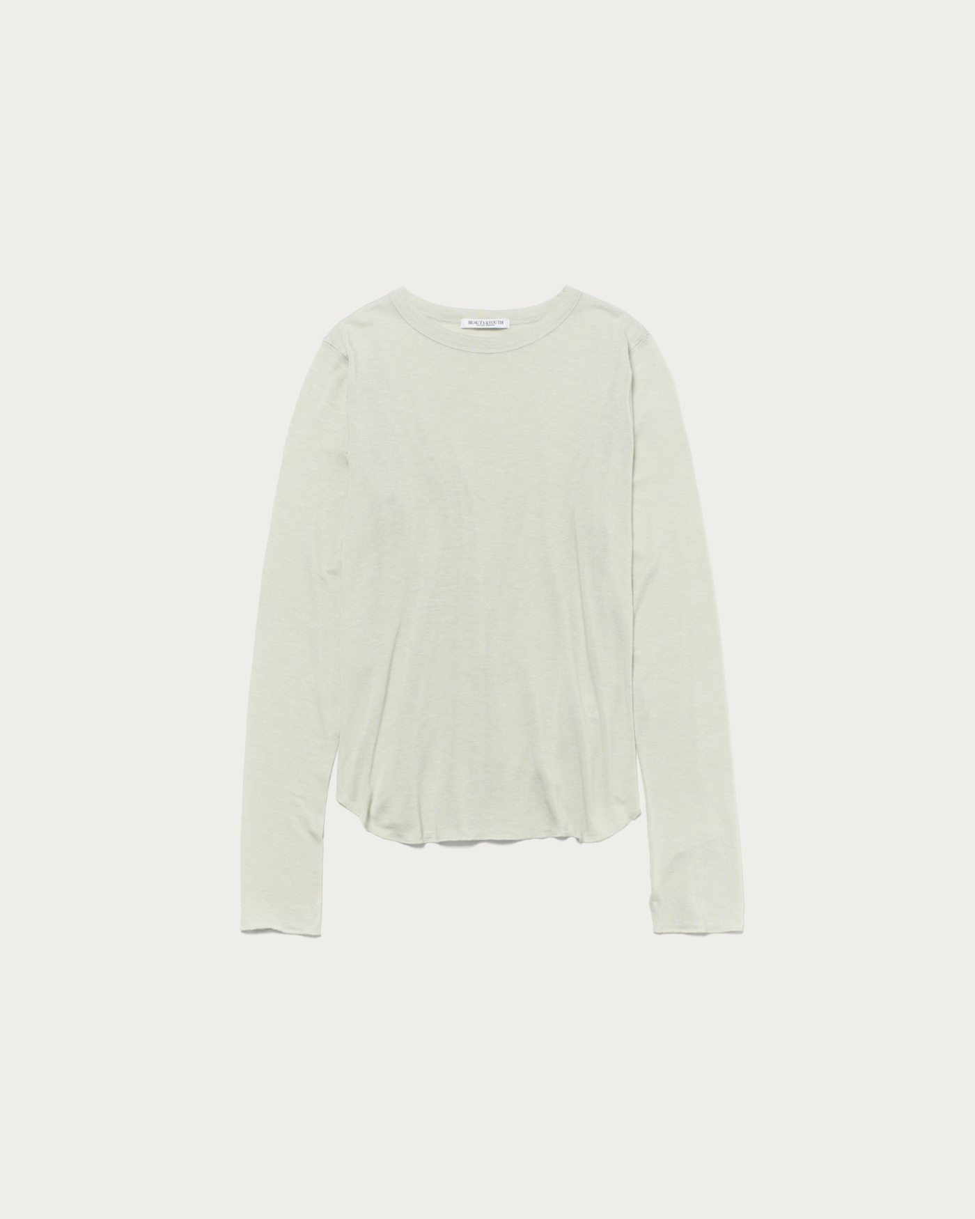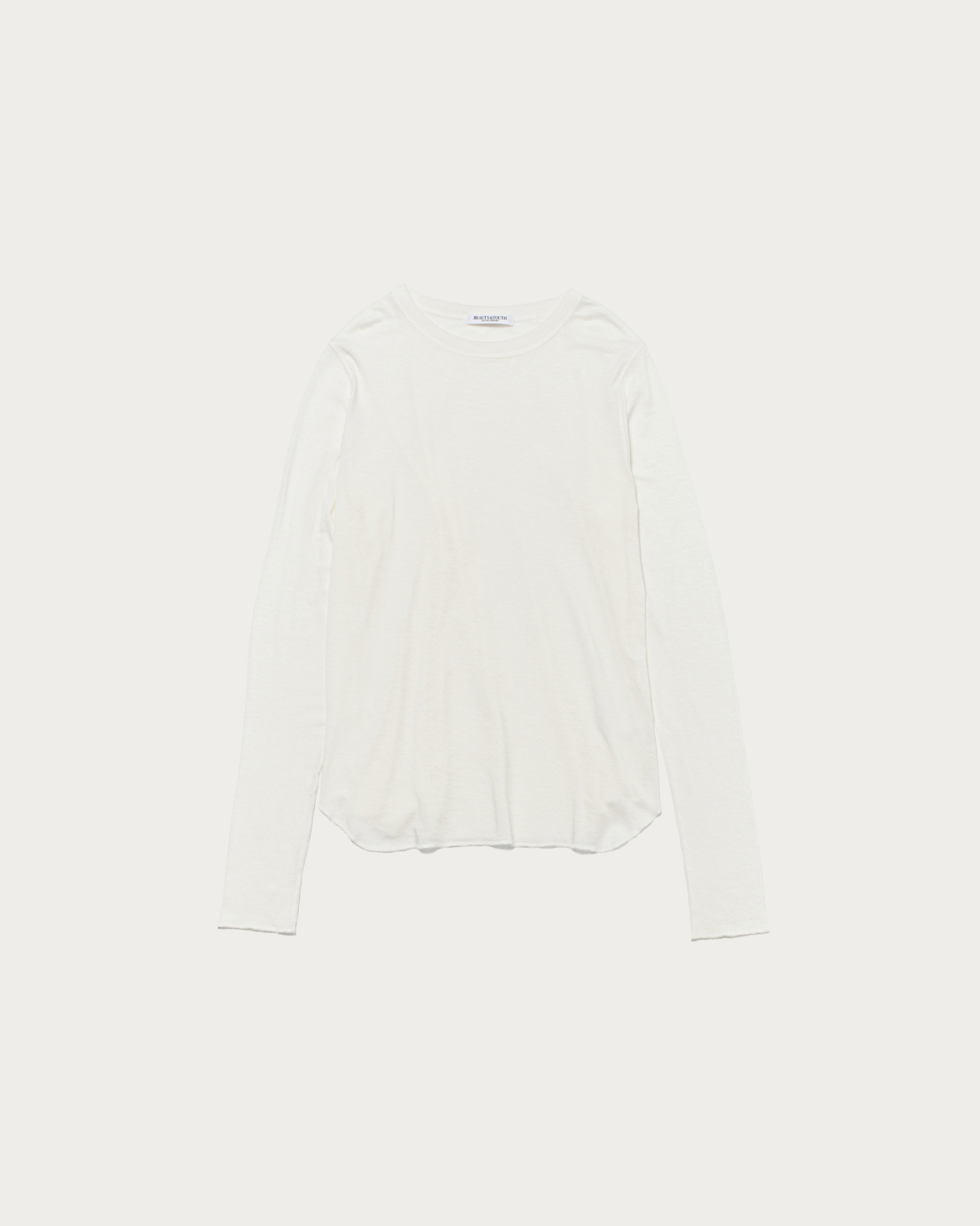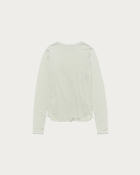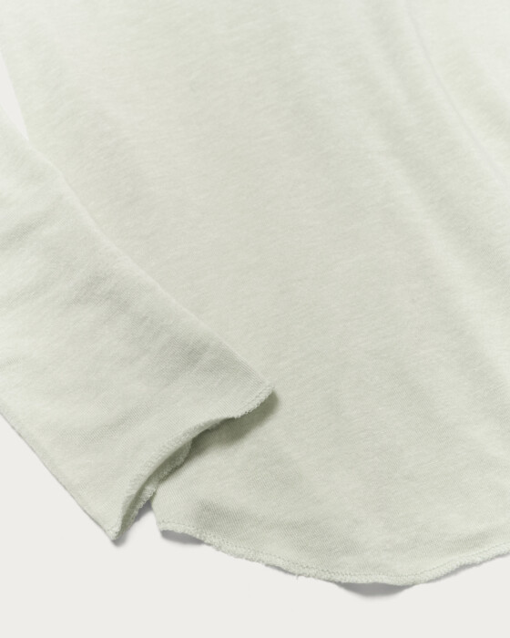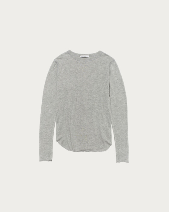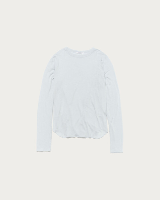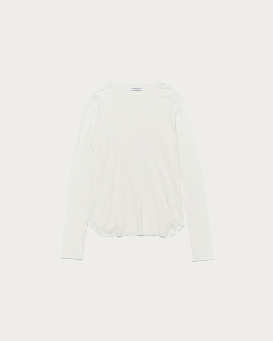 A simple and versatile long-sleeve T-shirt that highlights the texture of the material. As a standard item, we've paid attention to details such as the rounded hem and a size that works well for layering. The fabric, which includes polyurethane in cellulose, is characterized by its soft and supple marshmallow touch.