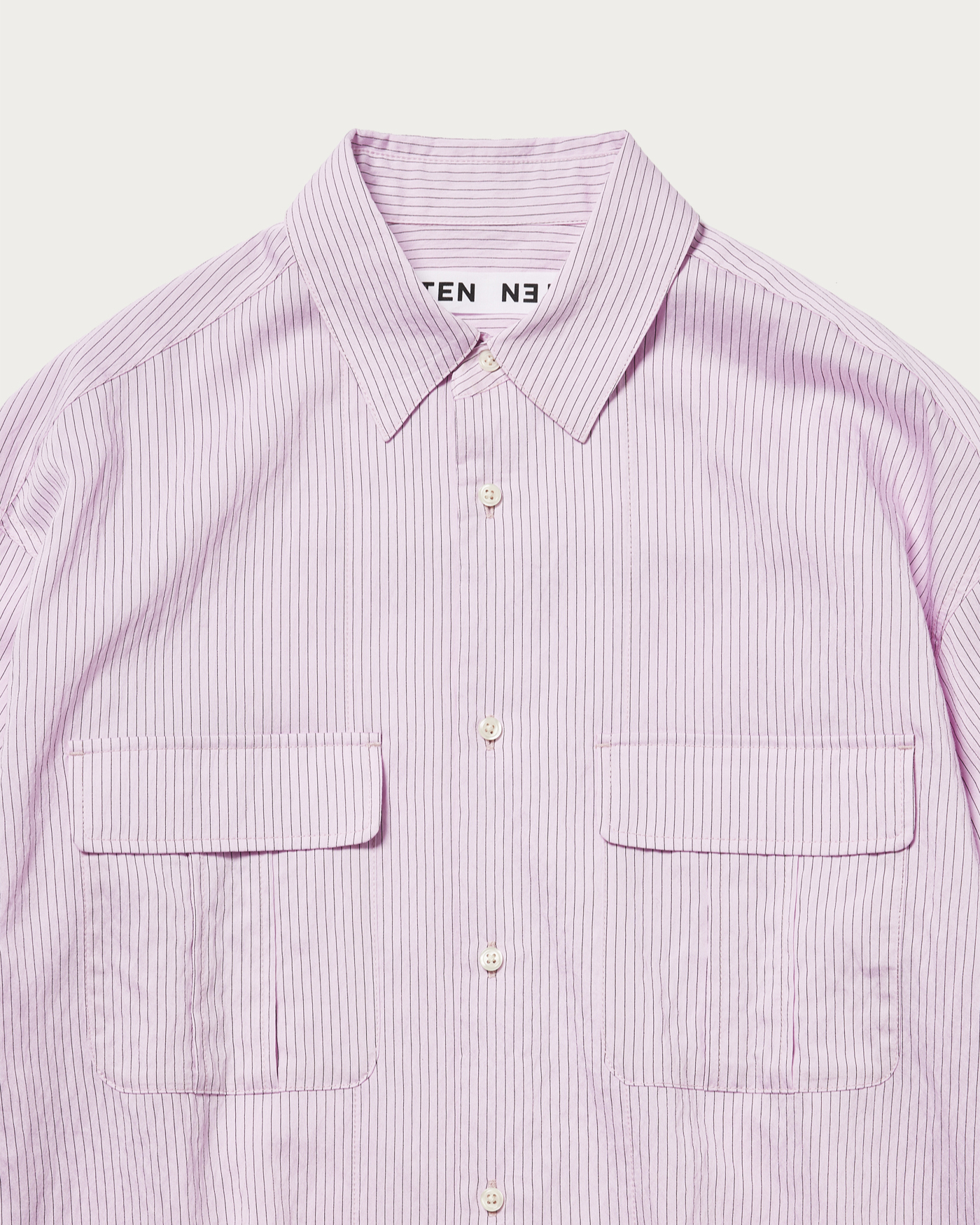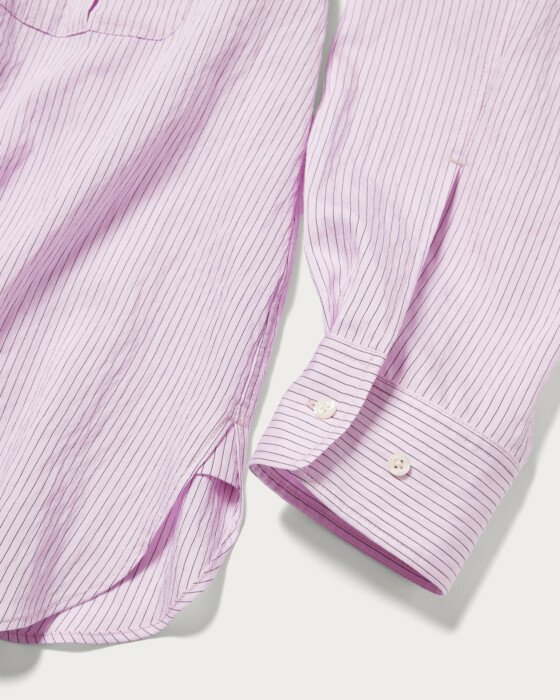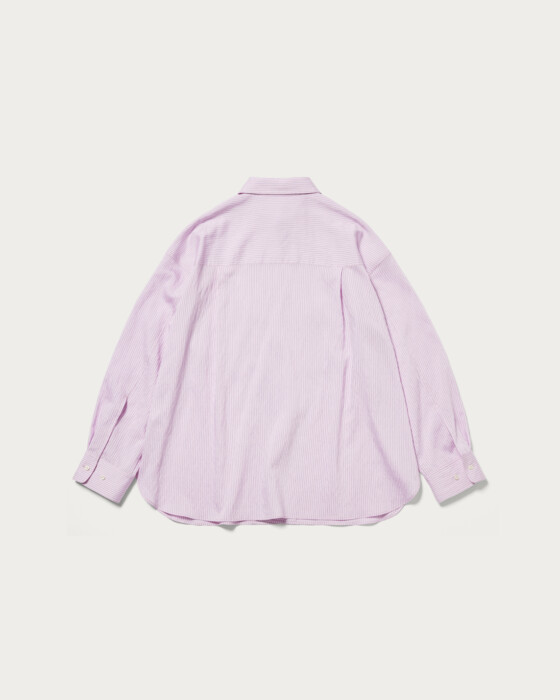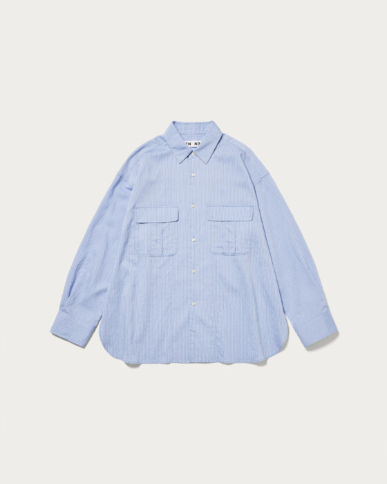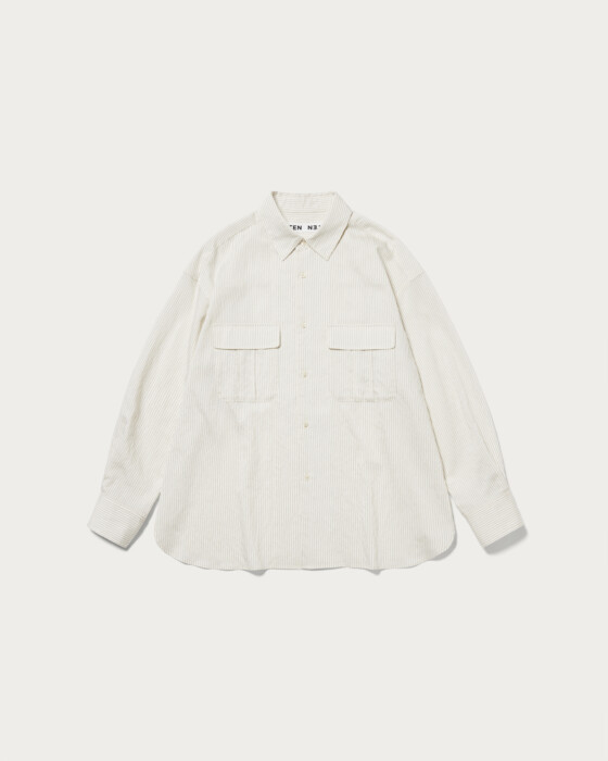 A shirt featuring CITEN's original stripe pattern on a slightly sheer fabric. The smooth texture and glossy material make it a versatile piece that can be styled both casually and elegantly. With a moderately relaxed fit, it maintains a masculine vibe while adding a touch of femininity with slightly voluminous sleeves. This all-purpose shirt offers a relaxing impression while still looking polished.