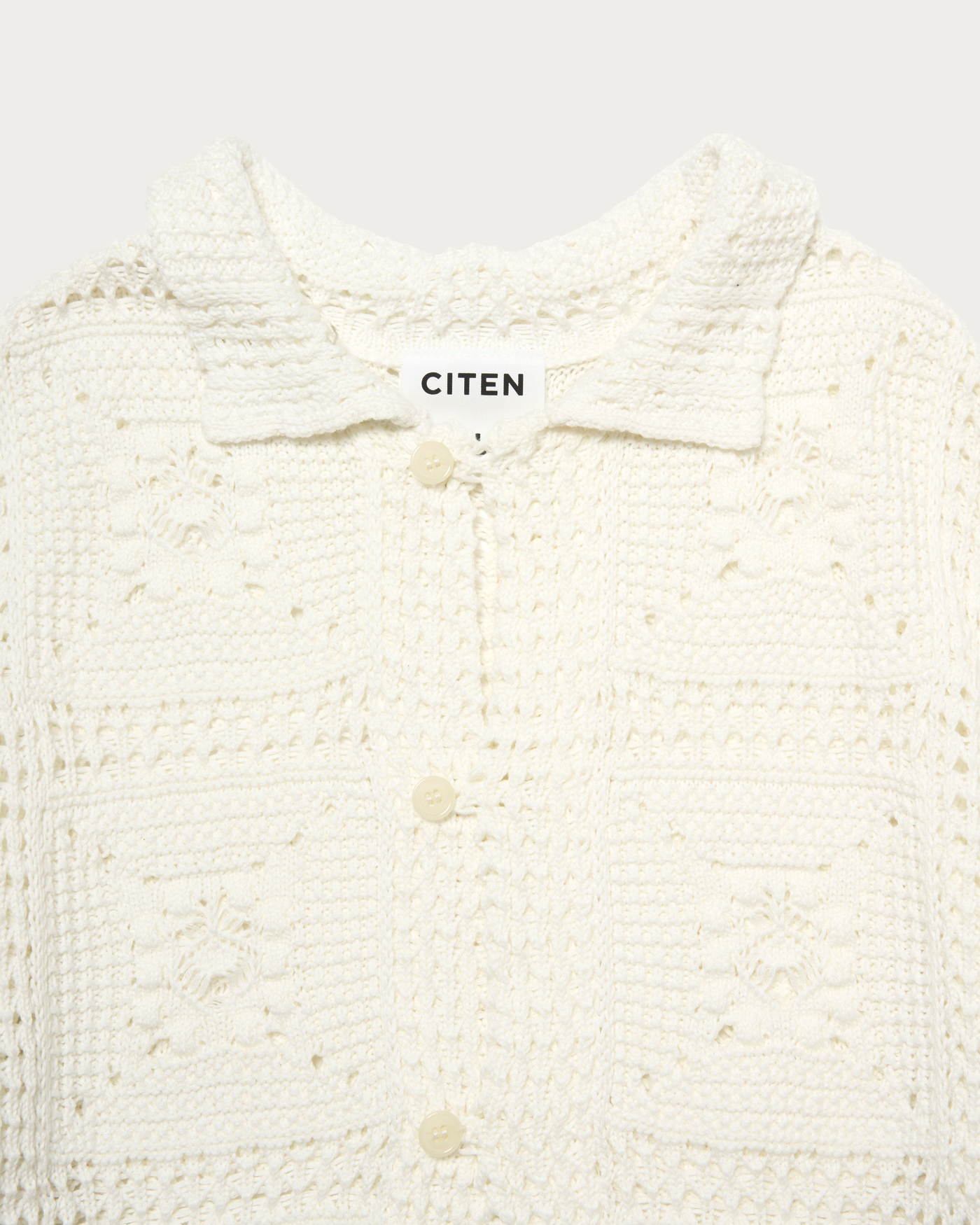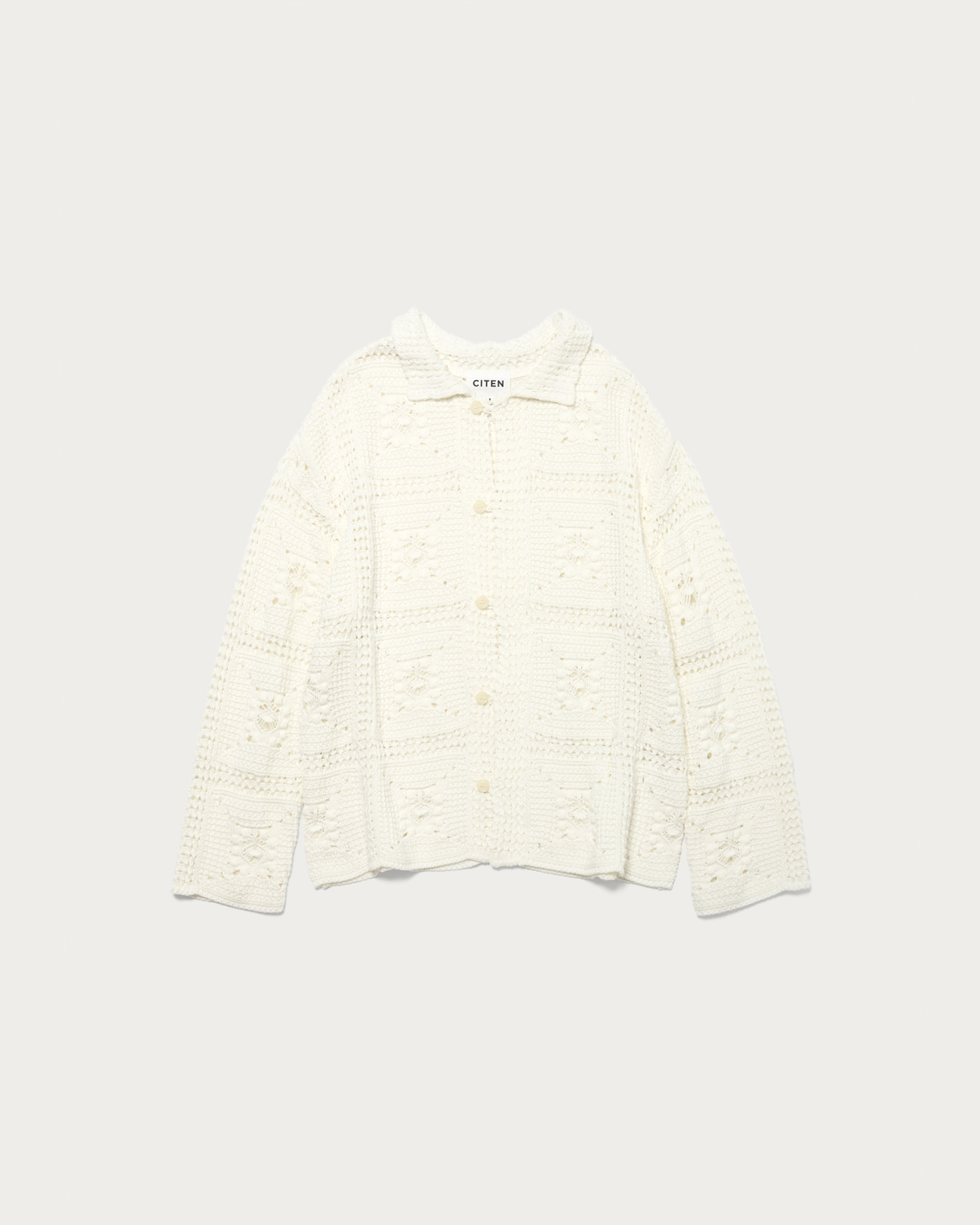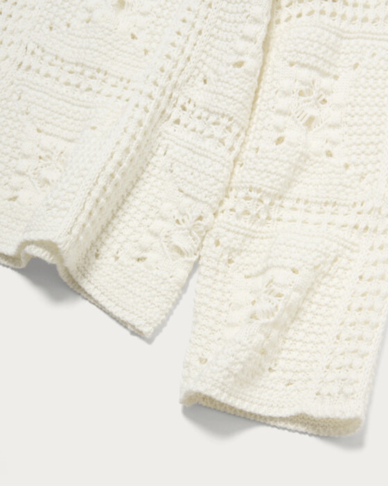 A crochet-style knit cardigan that shines with a crafted feel and a sense of effortless style. The CITEN original crochet-style pattern adds dimension and a touch of spring to your outfit. With a substantial texture, it can be worn like a jacket. It looks great worn open as a layering piece or buttoned up as a pullover. This standout item offers a relaxed styling option perfect for both resort and everyday wear.
