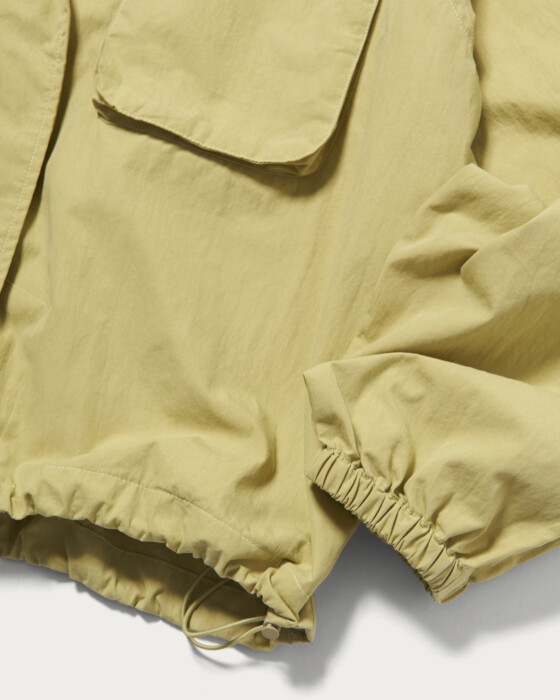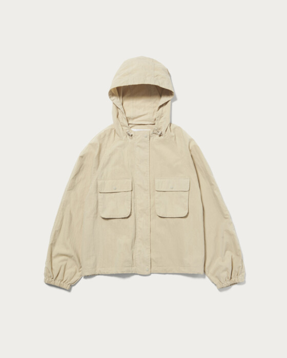 A jacket characterized by its lightweight, easy-to-throw-on design and large pockets with a workwear feel. The raglan sleeves allow for easy movement around the shoulders, making it a convenient item for daily use.