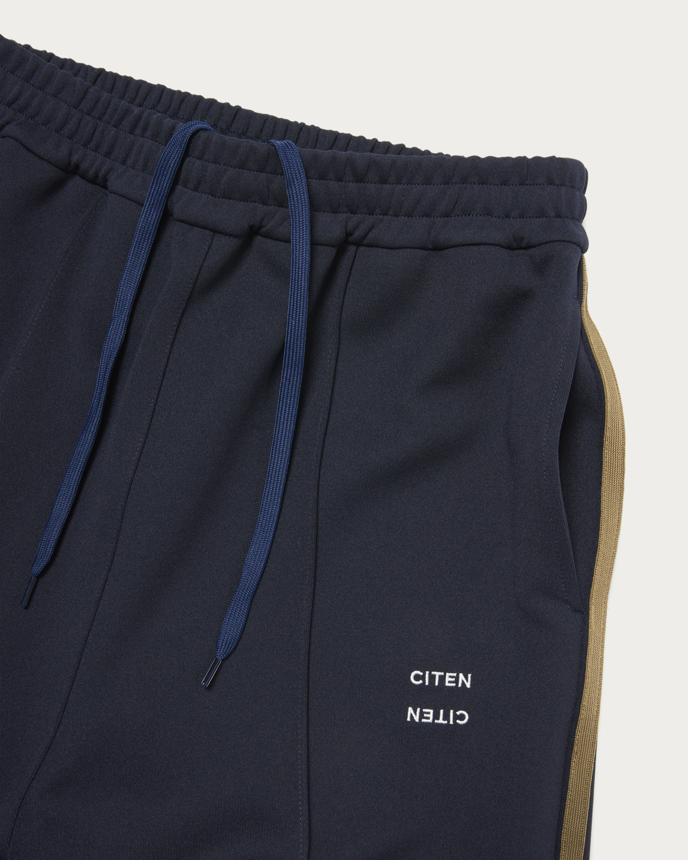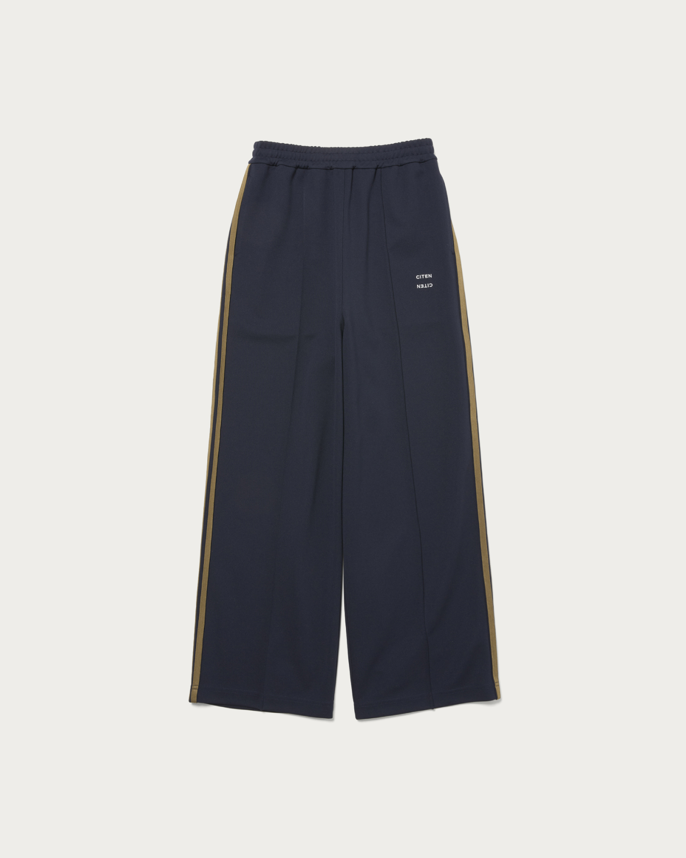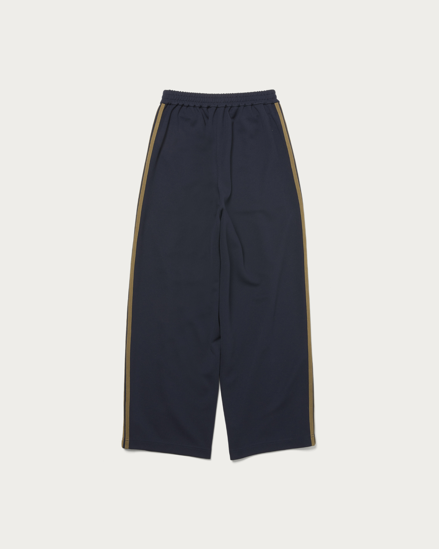 Easy pants with side lines that emphasize vertical lines in the design. They offer a relaxed feel while maintaining a sleek appearance. The color scheme and volume are balanced to avoid being overly sporty, making them easy to incorporate into everyday styling.