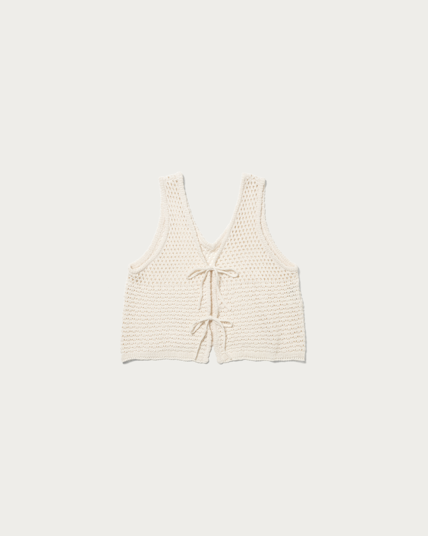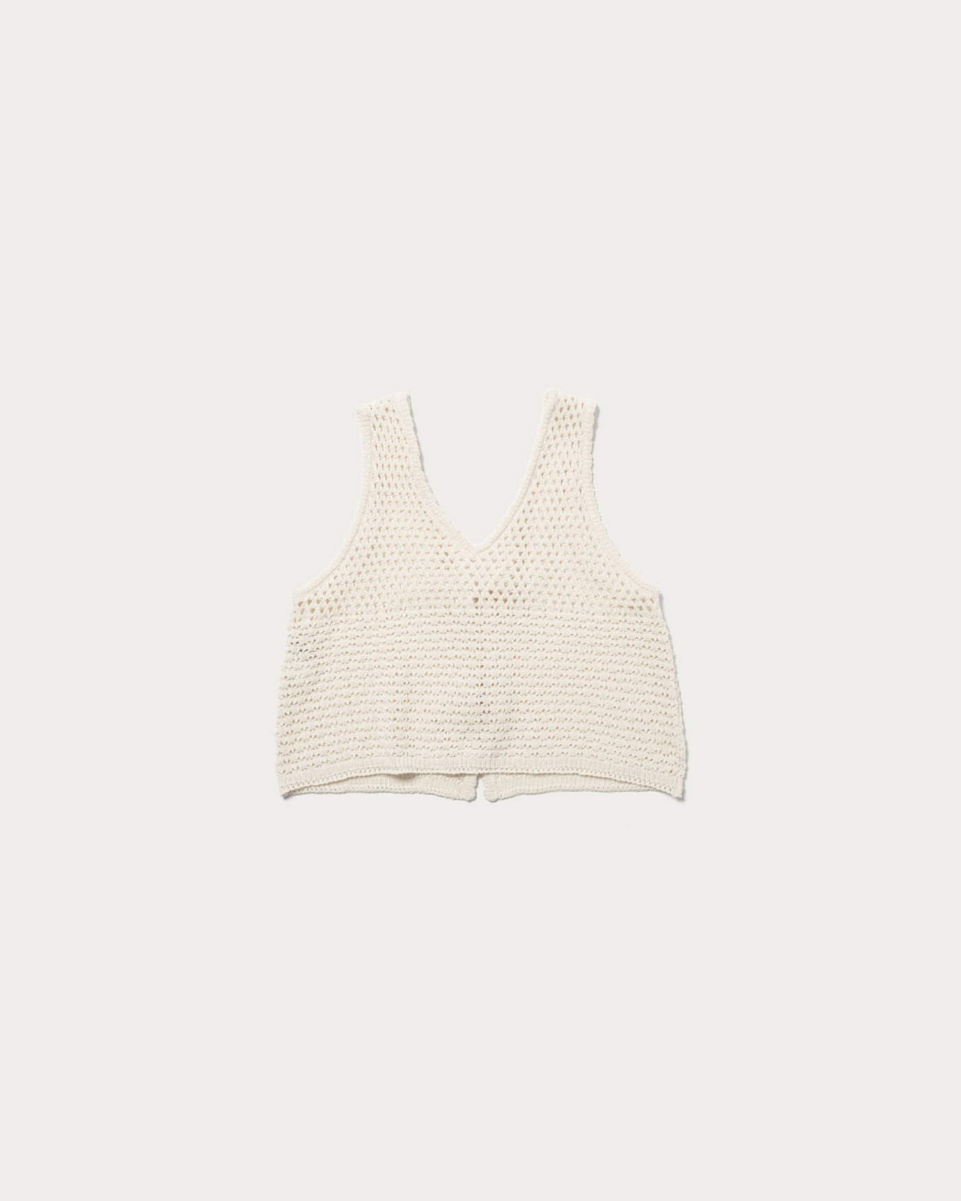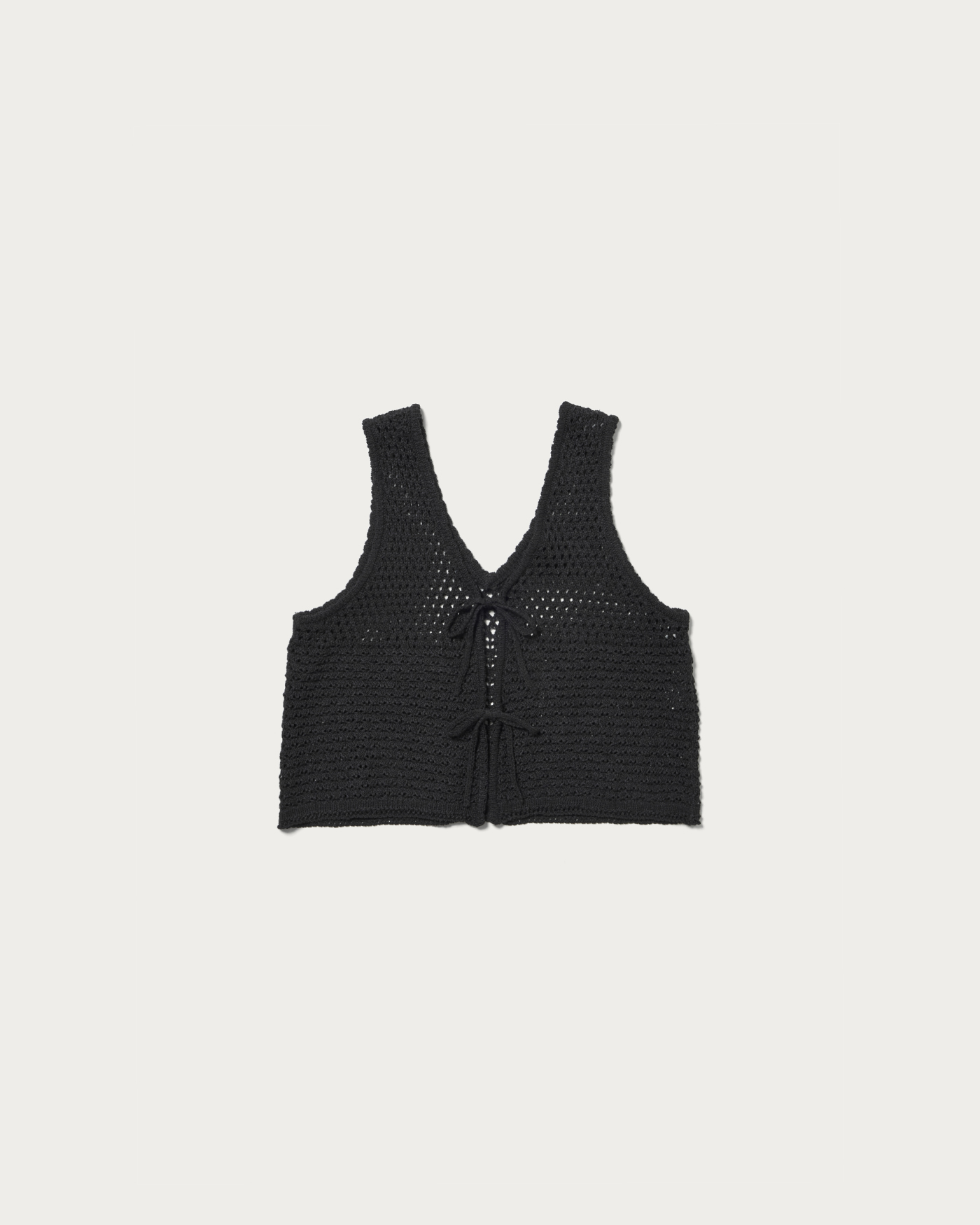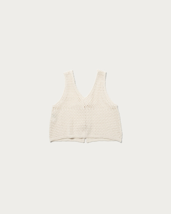 The vest, knitted with a combination of textured patterns, can be worn in two ways, front and back. The textured knit is a key feature, making it perfect for layering with sweaters, and in the summer, it can be paired with a T-shirt for a stylish look. It's a versatile piece that can be enjoyed throughout the long season.