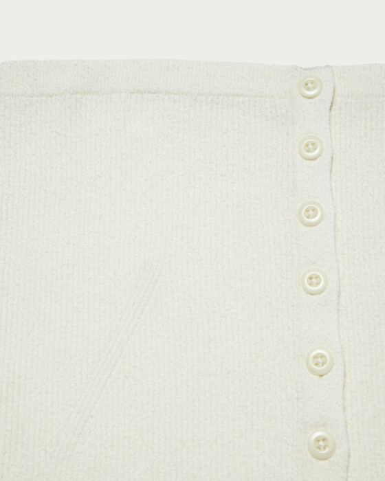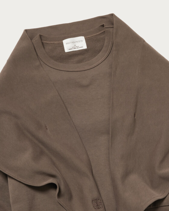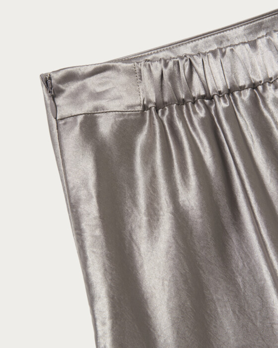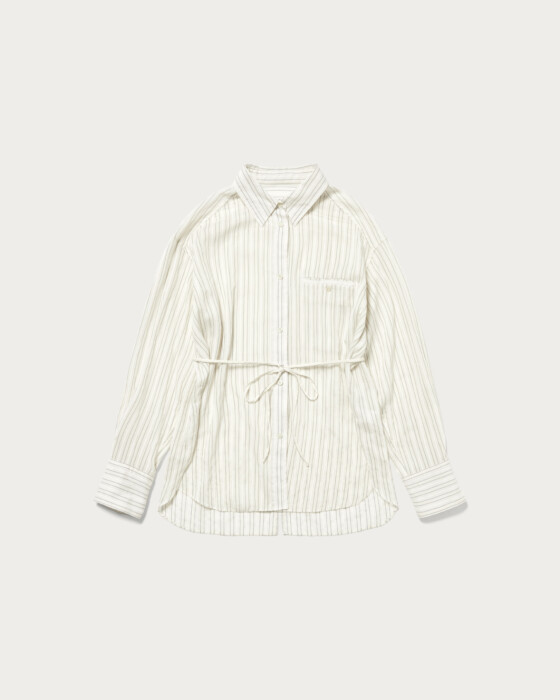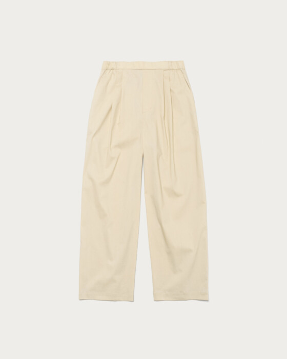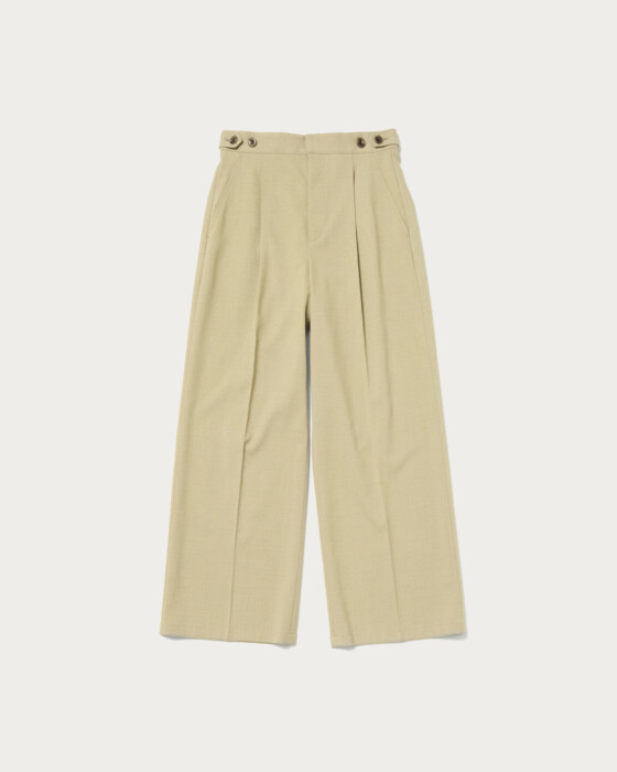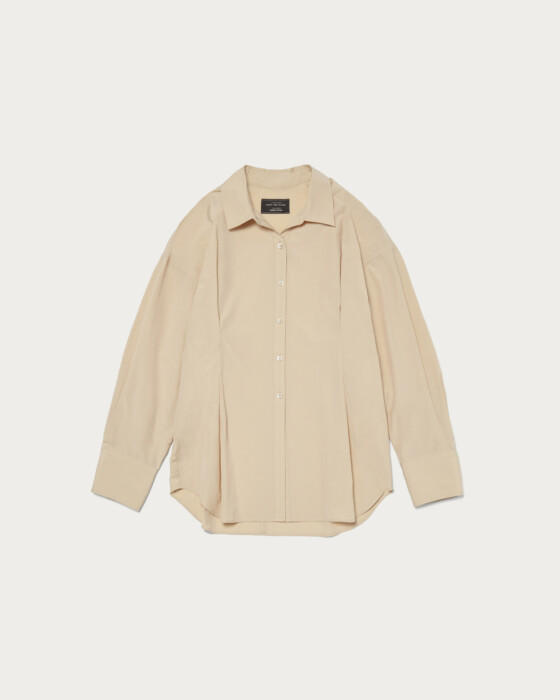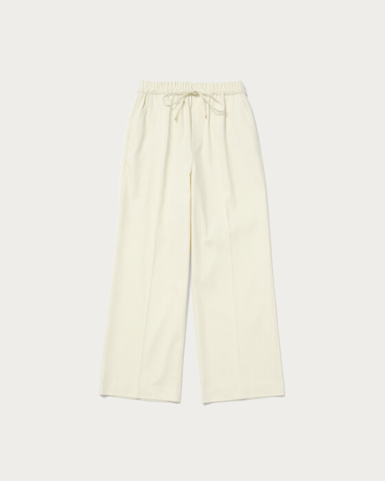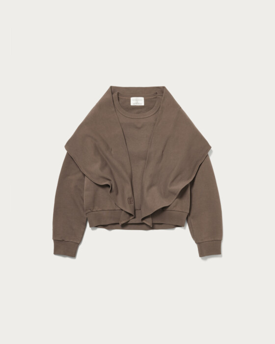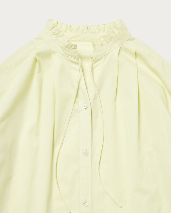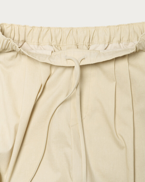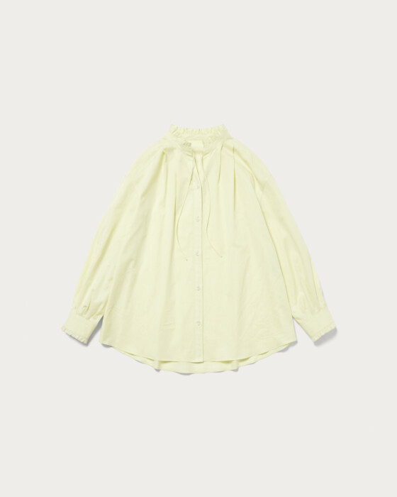 The food blouson, which tends to lean towards a casual style, is given a feminine touch with a cocoon silhouette that takes advantage of the fabric's firmness and softness. The use of gold zippers and gathers adds a touch of elegance. This piece can be worn in various styles depending on the items you pair it with.