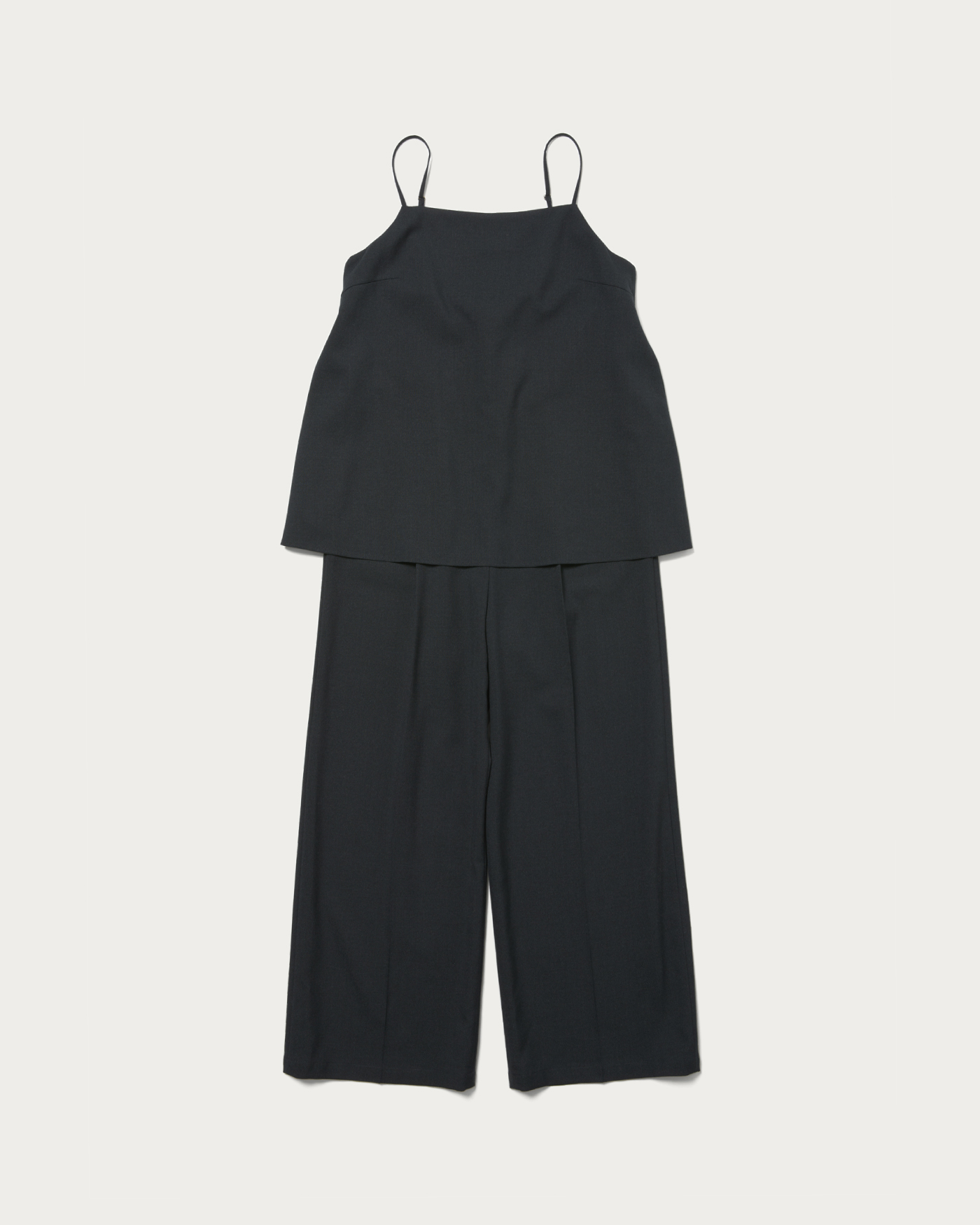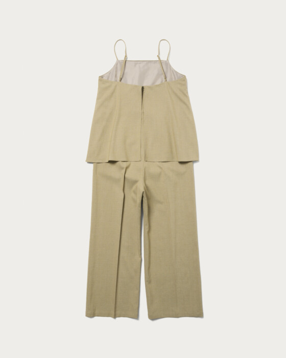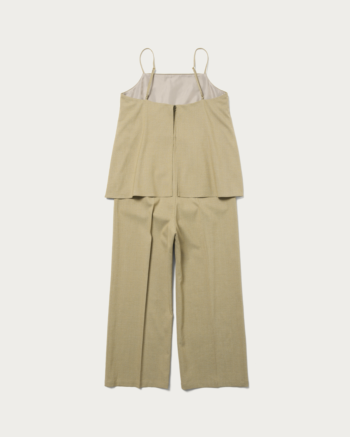 The layered-style all-in-one is a convenient piece that makes coordinating outfits a breeze. By adjusting the tunic length and the silhouette of the bottom part, it achieves a balanced look that enhances your style. The linen-blend fabric offers a seasonal feel, yet its substantial texture makes it a versatile item that can be worn from early spring through a long season.