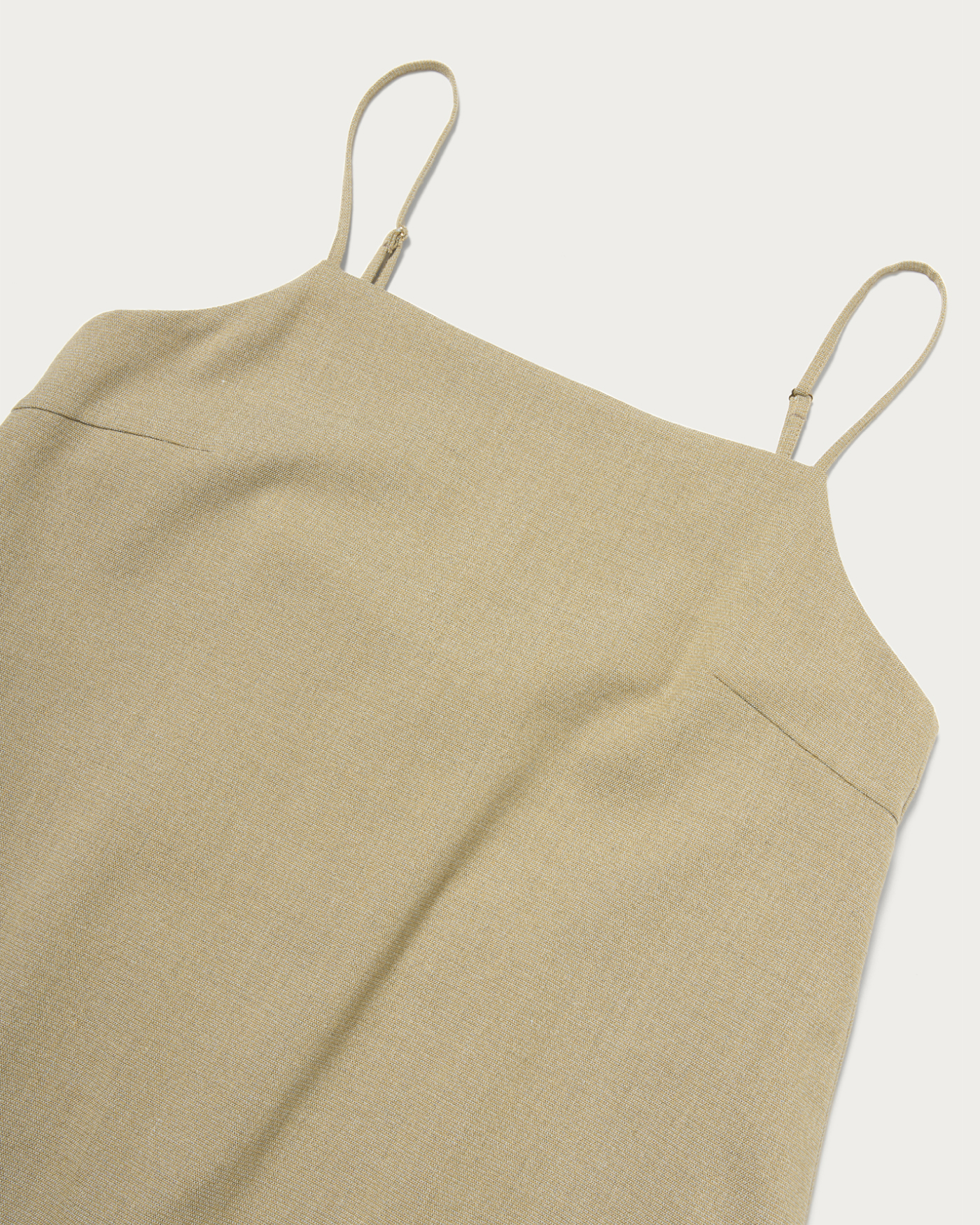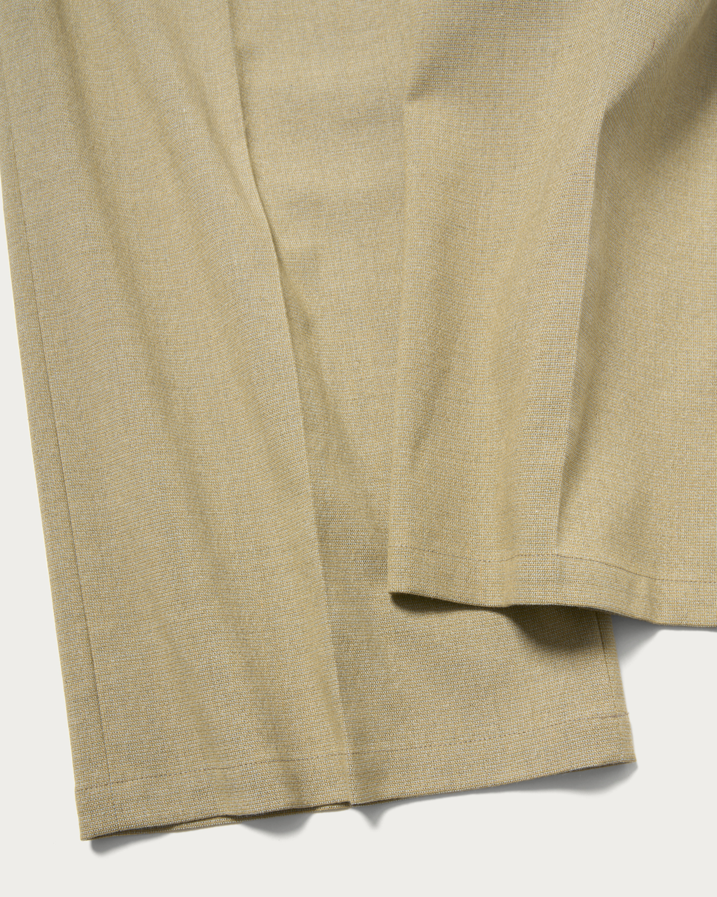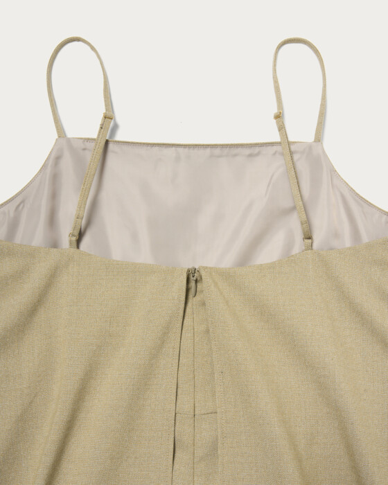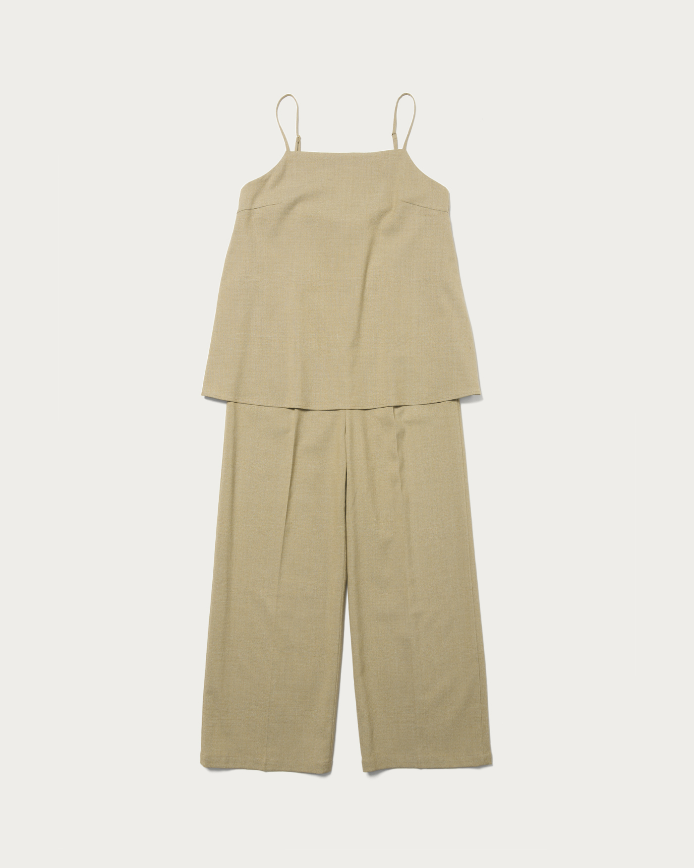 The layered-style all-in-one is a convenient piece that makes coordinating outfits a breeze. By adjusting the tunic length and the silhouette of the bottom part, it achieves a balanced look that enhances your style. The linen-blend fabric offers a seasonal feel, yet its substantial texture makes it a versatile item that can be worn from early spring through a long season.
