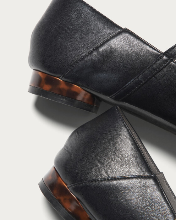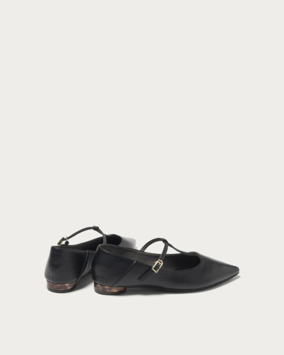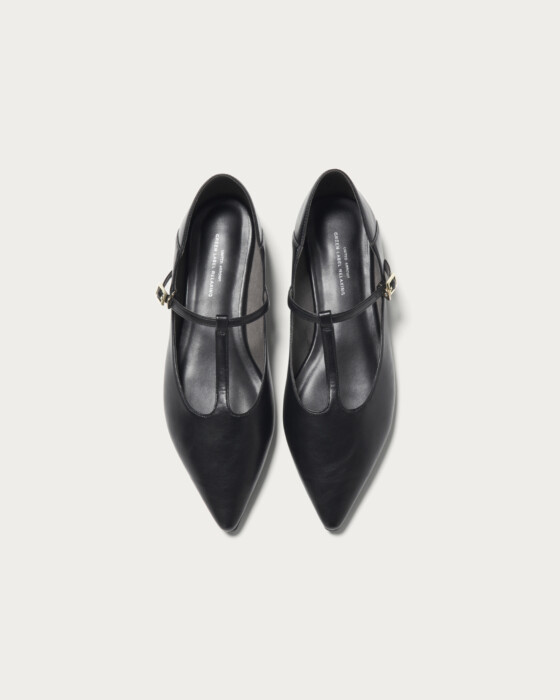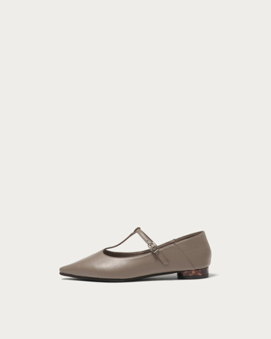 These strap shoes feature a soft design that allows you to wear them in two ways, including stepping on the heel. For the Spring/Summer 2026 season, T-straps are emerging as a new trend. The round heels are adorned with a tortoiseshell-like material, capturing a balance of casual elegance and classic style.