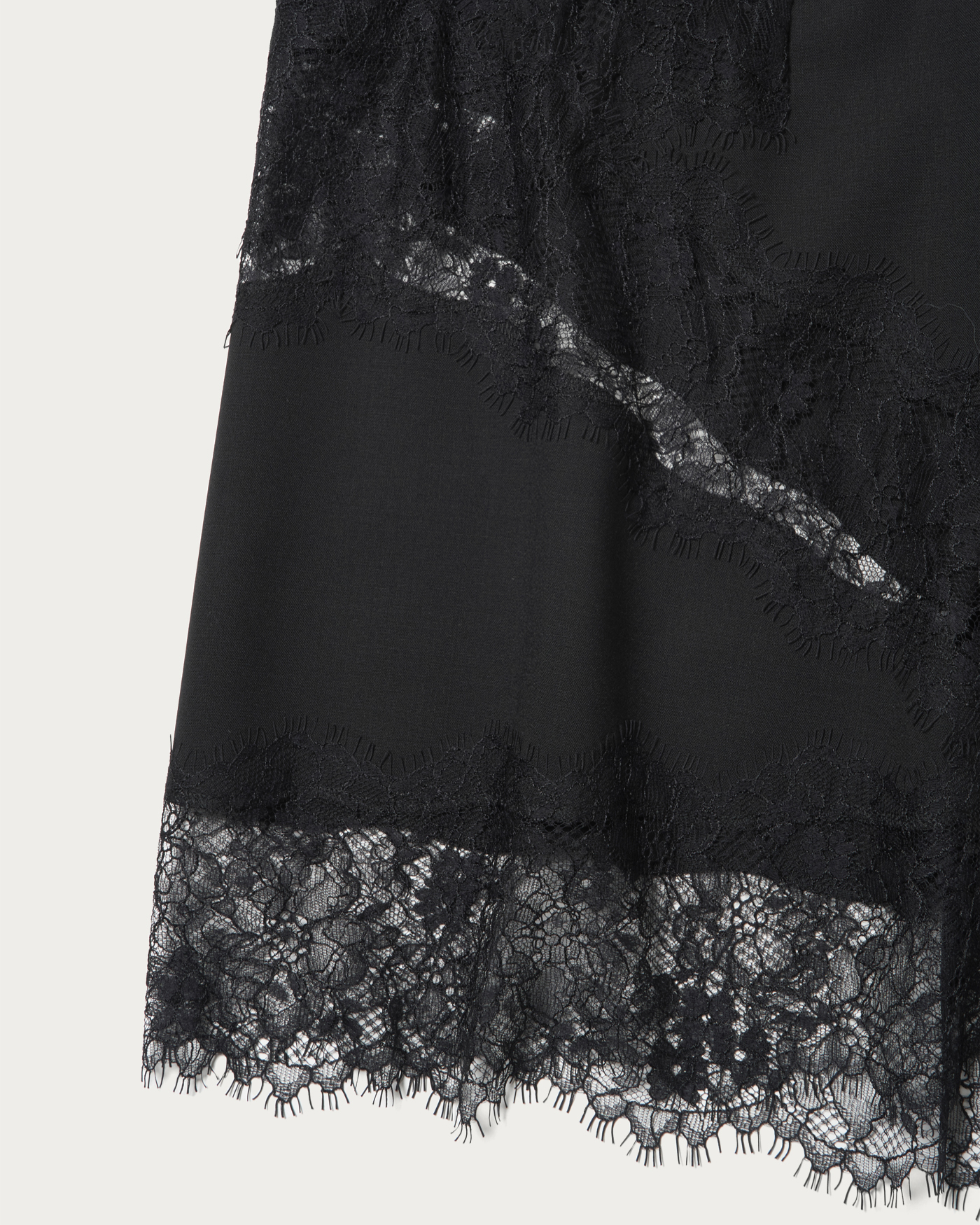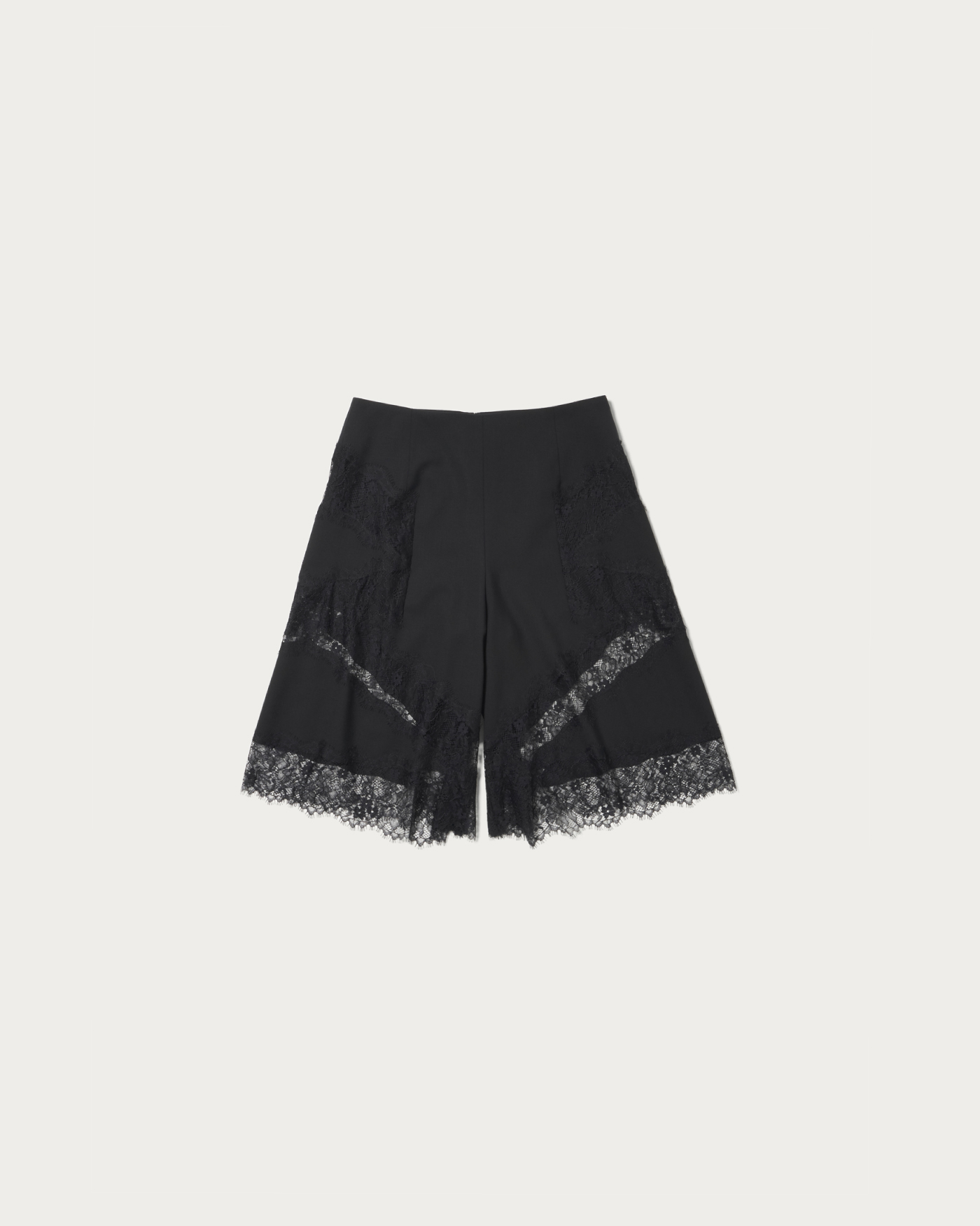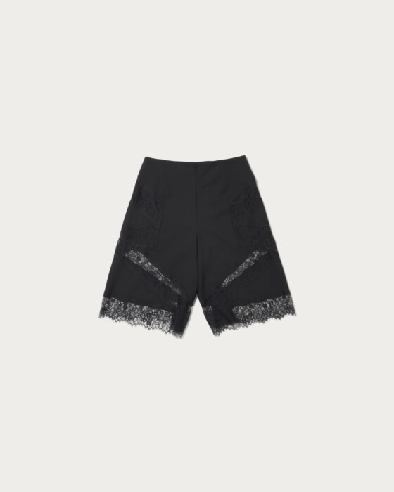 Half pants with underpants that combine a firm material with delicate lace. The design features lace not only at the hem but also along the sides, making it a standout piece. We also recommend wearing it as a set with bottoms made from the same material.