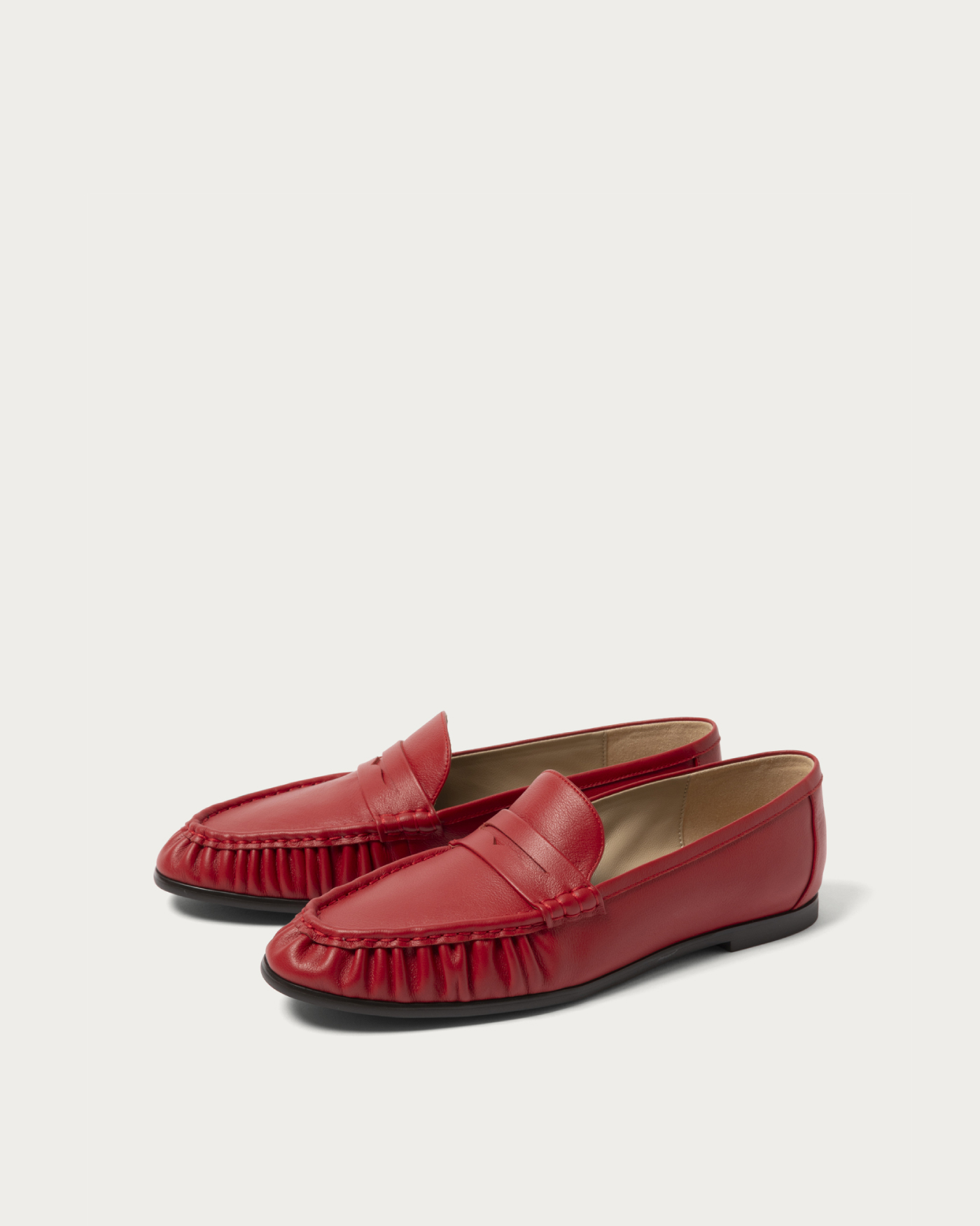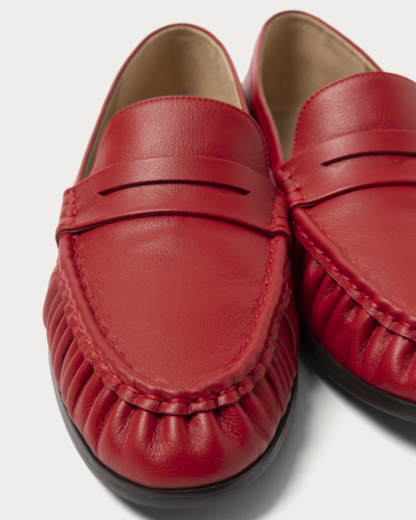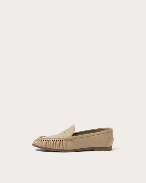 The hand-sewn gathered moccasins gently envelop your feet with their soft construction, providing a comfortable fit that flexes smoothly with each step. The slightly narrow toe line adds a touch of sophistication to the casual look, making these versatile loafers a perfect match for a wide range of styles.