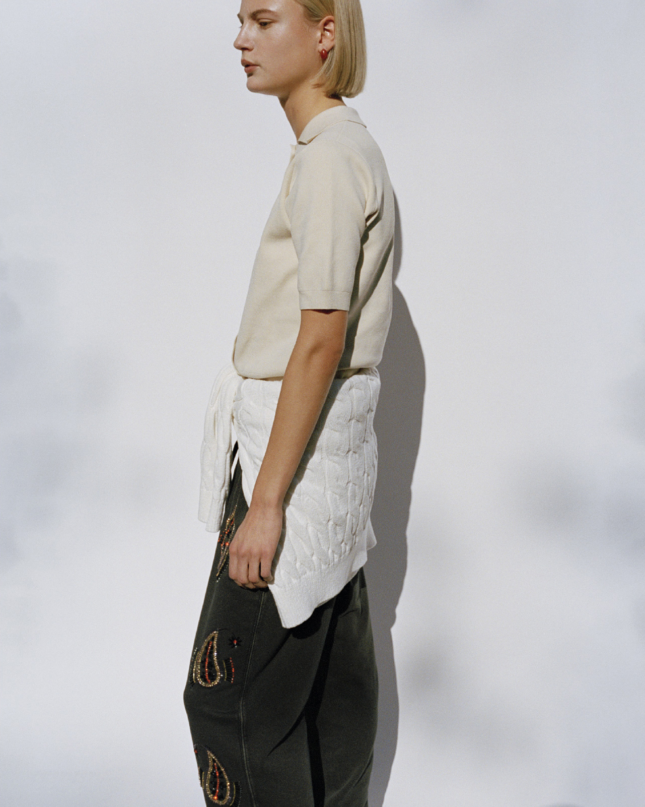 along with overdyed bottoms, shirts, and cropped jackets,