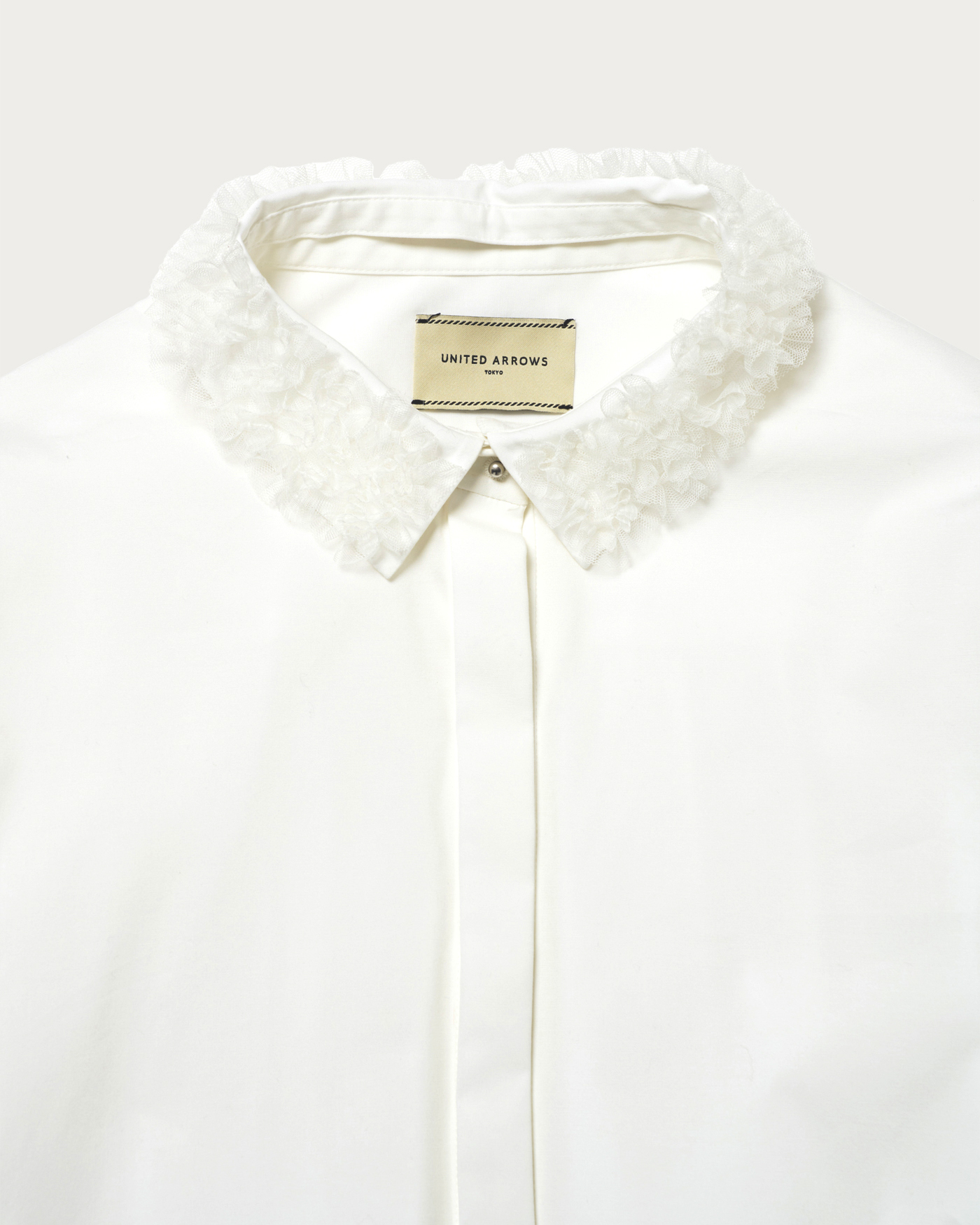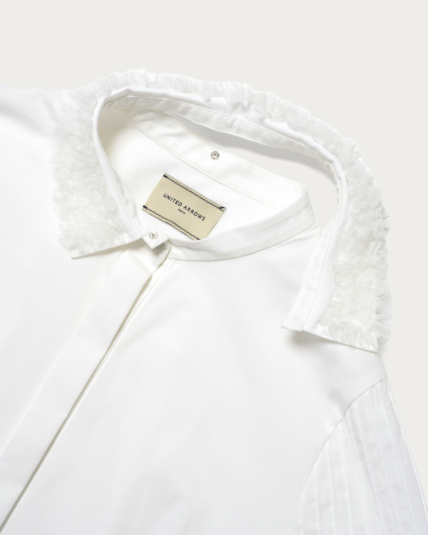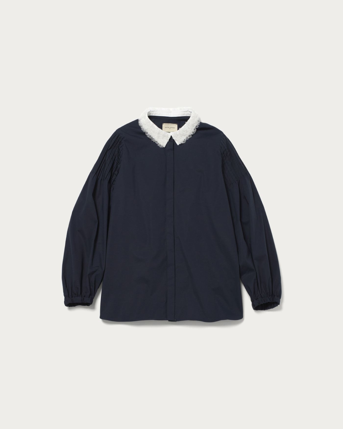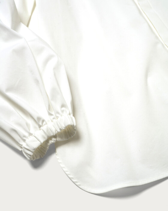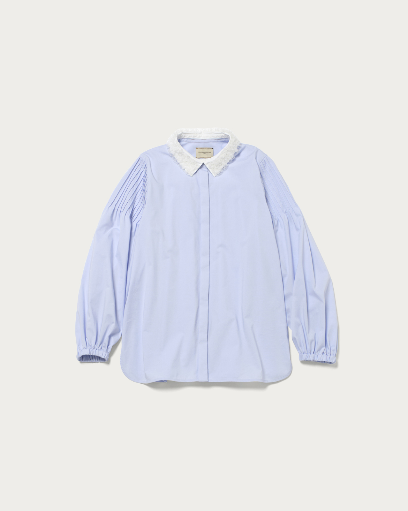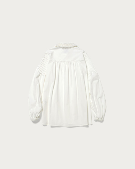 A blouse with a detachable frill-embroidered collar that stands out even without accessories. When the collar is removed, it can be worn as a band collar, and pintucks on the sleeve caps give it a simple appearance. The cuffs have flat elastic, allowing for adjustable length, so you can enjoy a change in impression from simple to elegant. This blouse is easy to care for at home and is versatile enough to be worn daily or on special occasions.