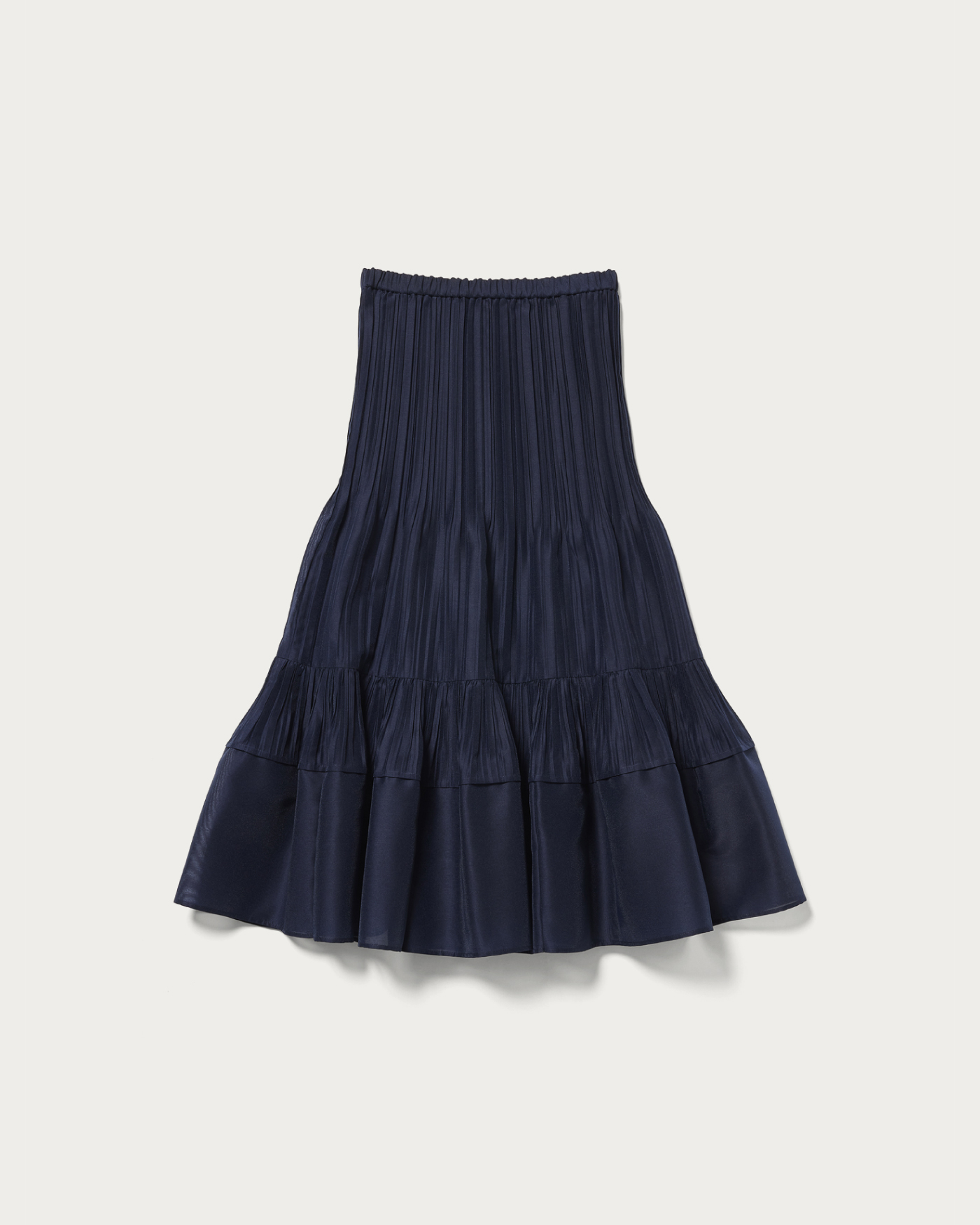 A skirt with a structured silhouette and distinctive pleats that make a striking impression and serve as an accent to any outfit. The waistband features an elastic design for a comfortable fit. It has a moderately flared silhouette that doesn't cling to the body's lines. This versatile skirt can be dressed up with a fitted ribbed knit for a polished look or paired with a sweatshirt for a more casual style.