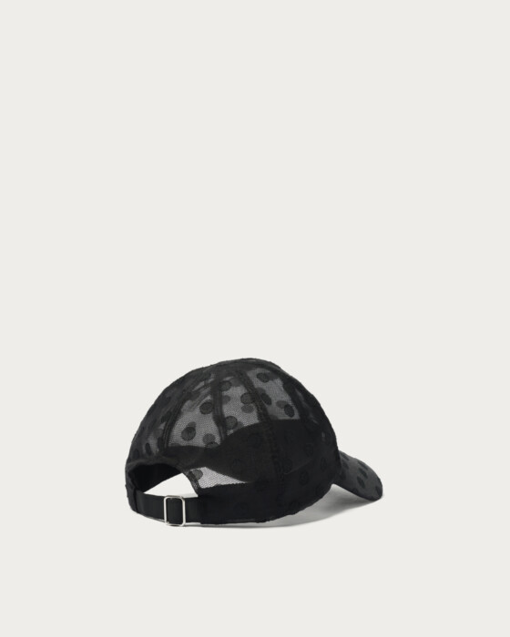 A cap with an eye-catching sheer dot design. This cap is crafted with a sheer material that gives it a transparent look. The adorable dot pattern is unified in a single tone, making it a subtle accent to incorporate into your outfit. Its deep fit and beautiful silhouette create a feminine frame around the face.